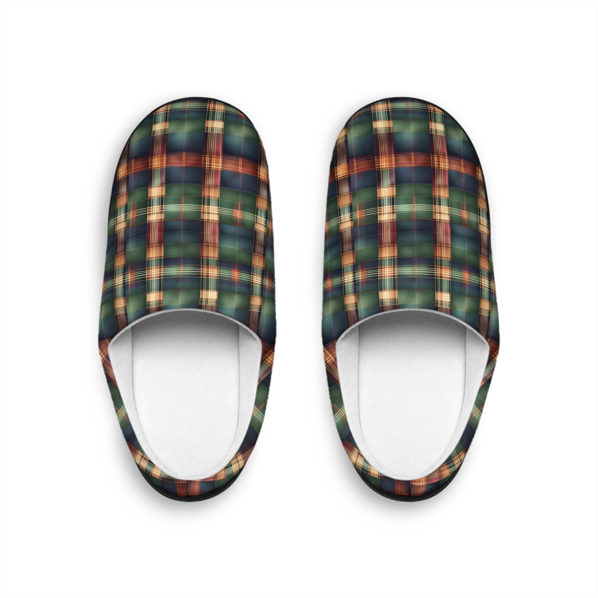 Men's IndoorSlippers Tartan Plaid Mensslippers Anti-Skid Rubber Sole IndoorSlippers Forest Green Cozy Houseshoes GoldenBrown Men'sgift