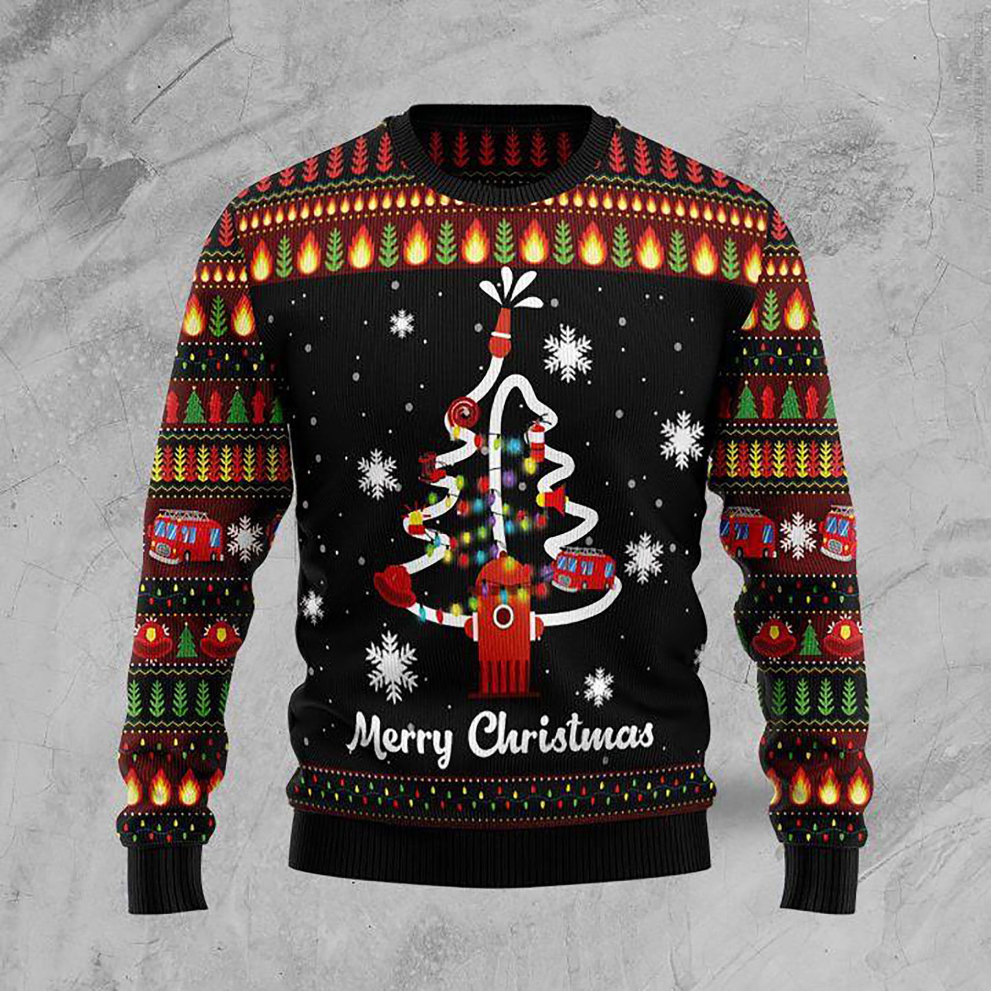 Merry Christmas Firefighter Ugly Christmas Sweater, Christmas Ugly Sweater, Christmas Gift, Gift Christmas 2024