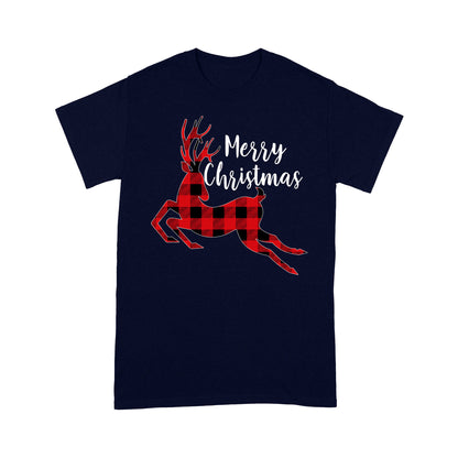 Merry Christmas Reindeer Buffalo Plaid Pattern Funny. Tee Shirt Gift For Christmas