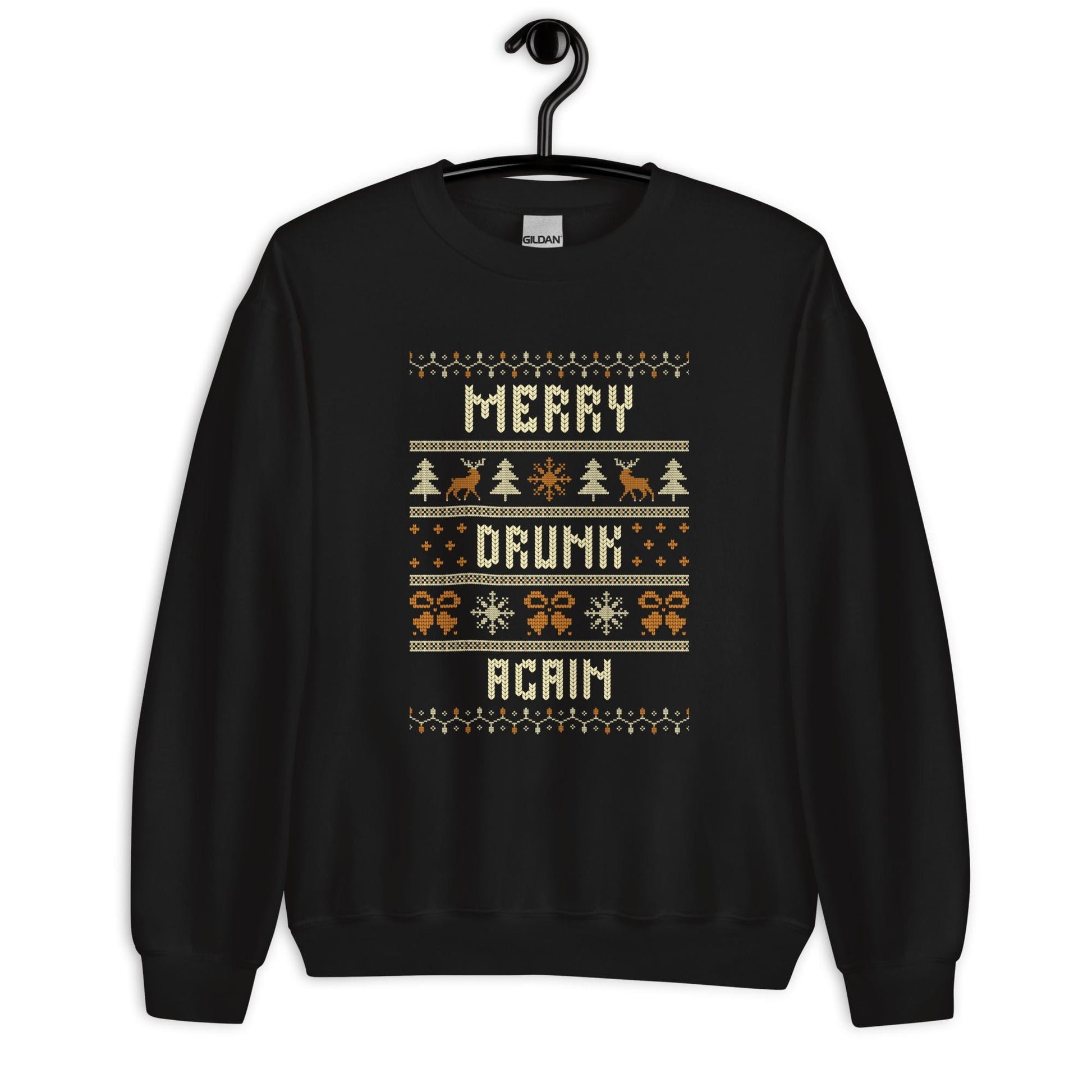 Merry Drunk Again Christmas Jumper | Funny Drinking Ugly Xmas | Boozy Festive Party Knitwear | Secret Santa Adult Gift