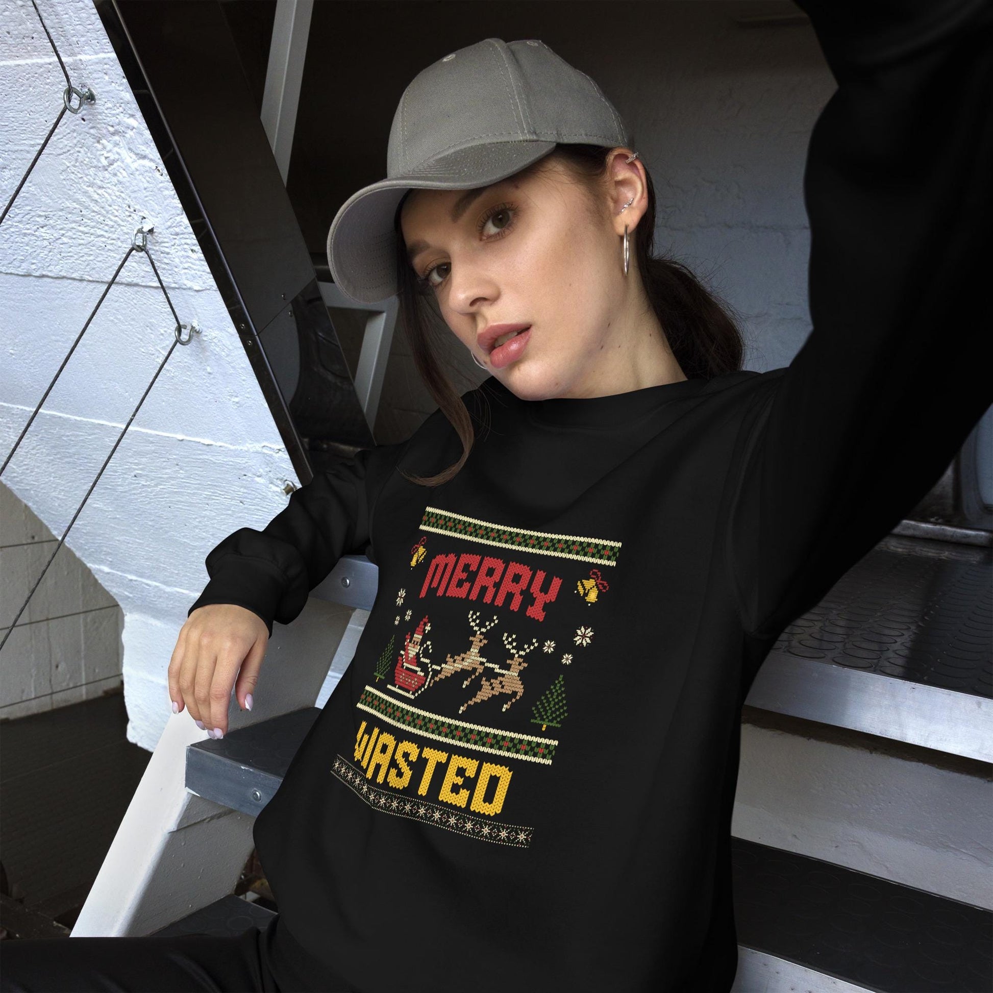 Merry Wasted Christmas Jumper | Funny Ugly Xmas | Holiday Drinking Sweatshirt Hoodie | Unisex Party Festive Christmas Jumper