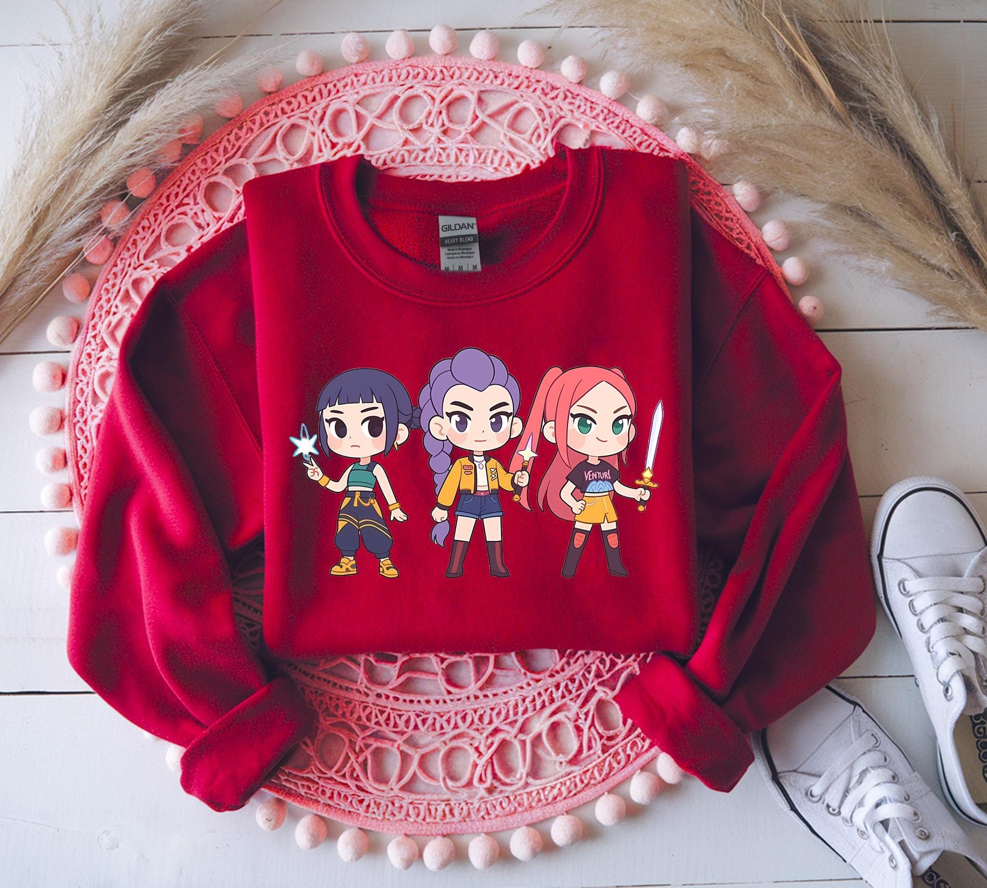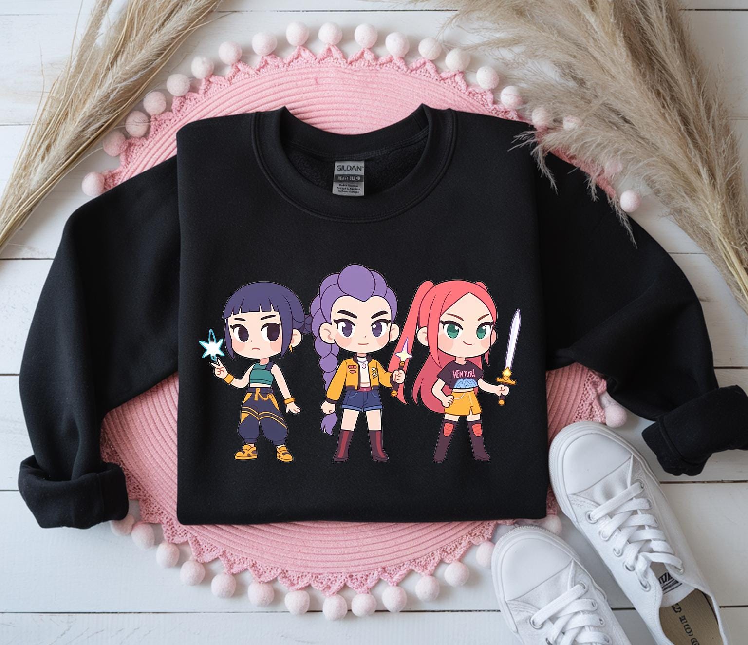 Mira, Rumi,Joey Sweatshirt Kpop Demon Hunters Sweatshirt, Huntrix Girl Shirt, Kpop idol group Shirt,Demon Hunter Merch, Gift for Huntrix fan