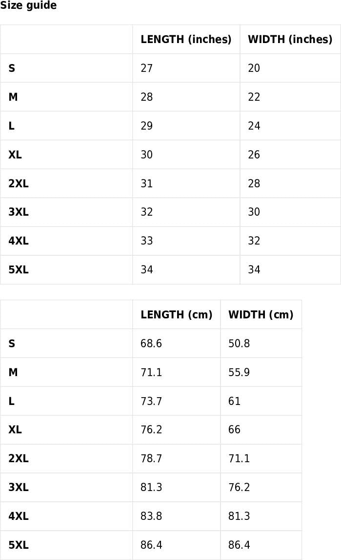 | 5XL | 34 | 86.4 | 34.00 | 86.4 | 40 | 101.6 |