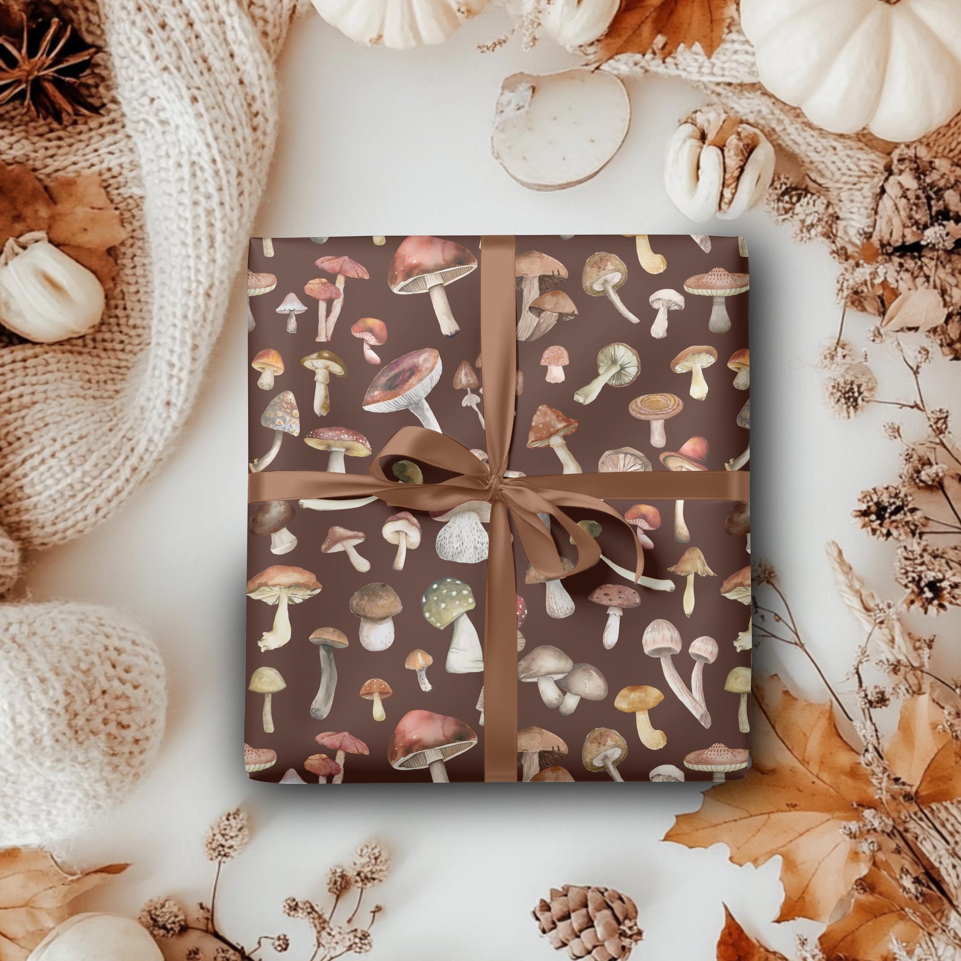Mushroom Gift Wrap: Boho Earthy Colors Natural Wrapping Paper
