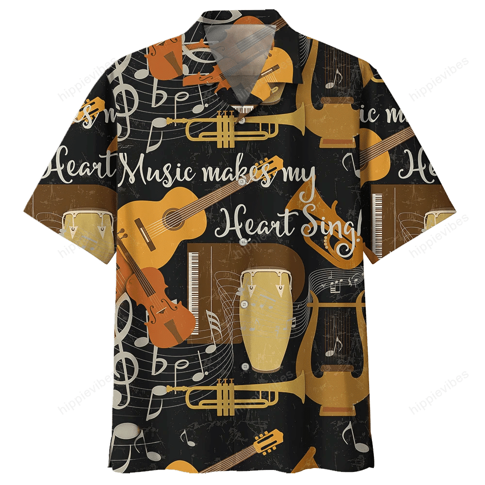 Music Make My Heart Sign Musical Instrument Hawaiian Shirt, Hawaiian Shirt Gift, Christmas Gift