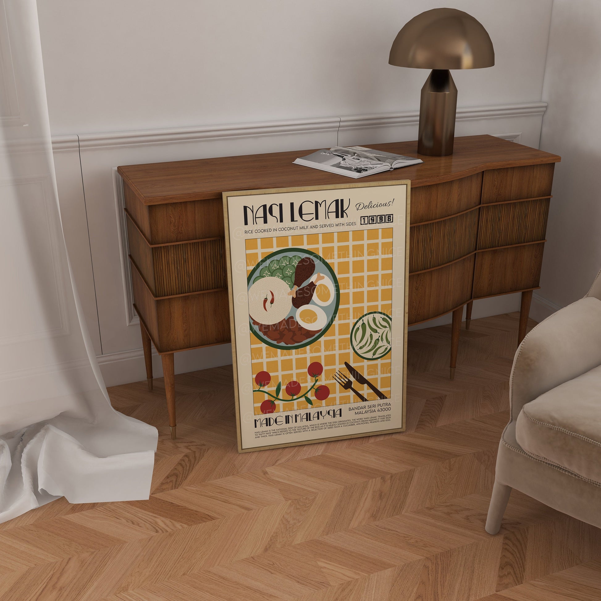 Nasi Lemak Poster, Food Print, Asian Food Poster, Modern Kitchen Decor, Illustration, Malaysia, Food, Chef Print, Bar Art, Retro Wall Art