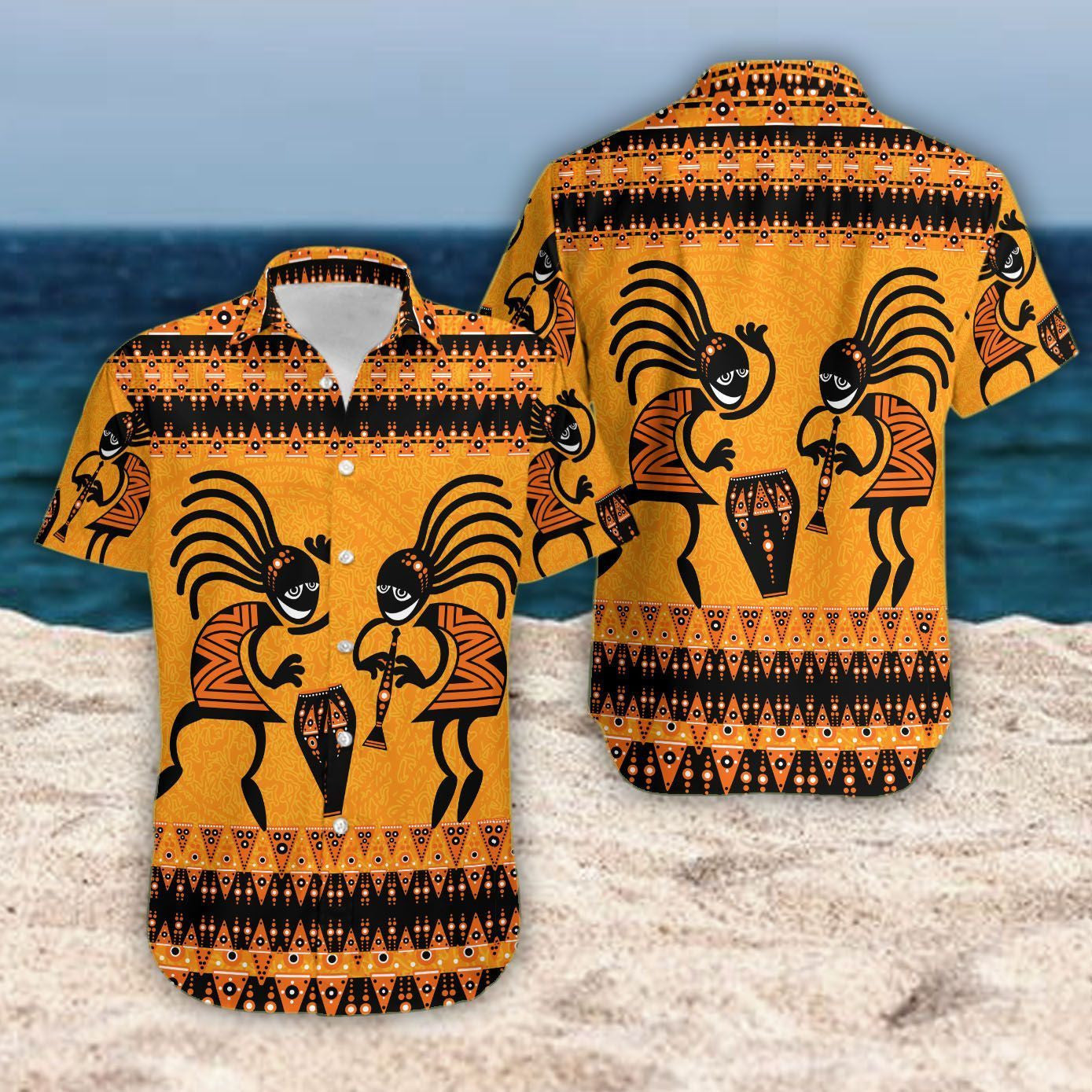 Native American Hawaiian Shirt Tribal Human Activities Yellow Theme, Hawaiian Shirt Gift, Christmas Gift