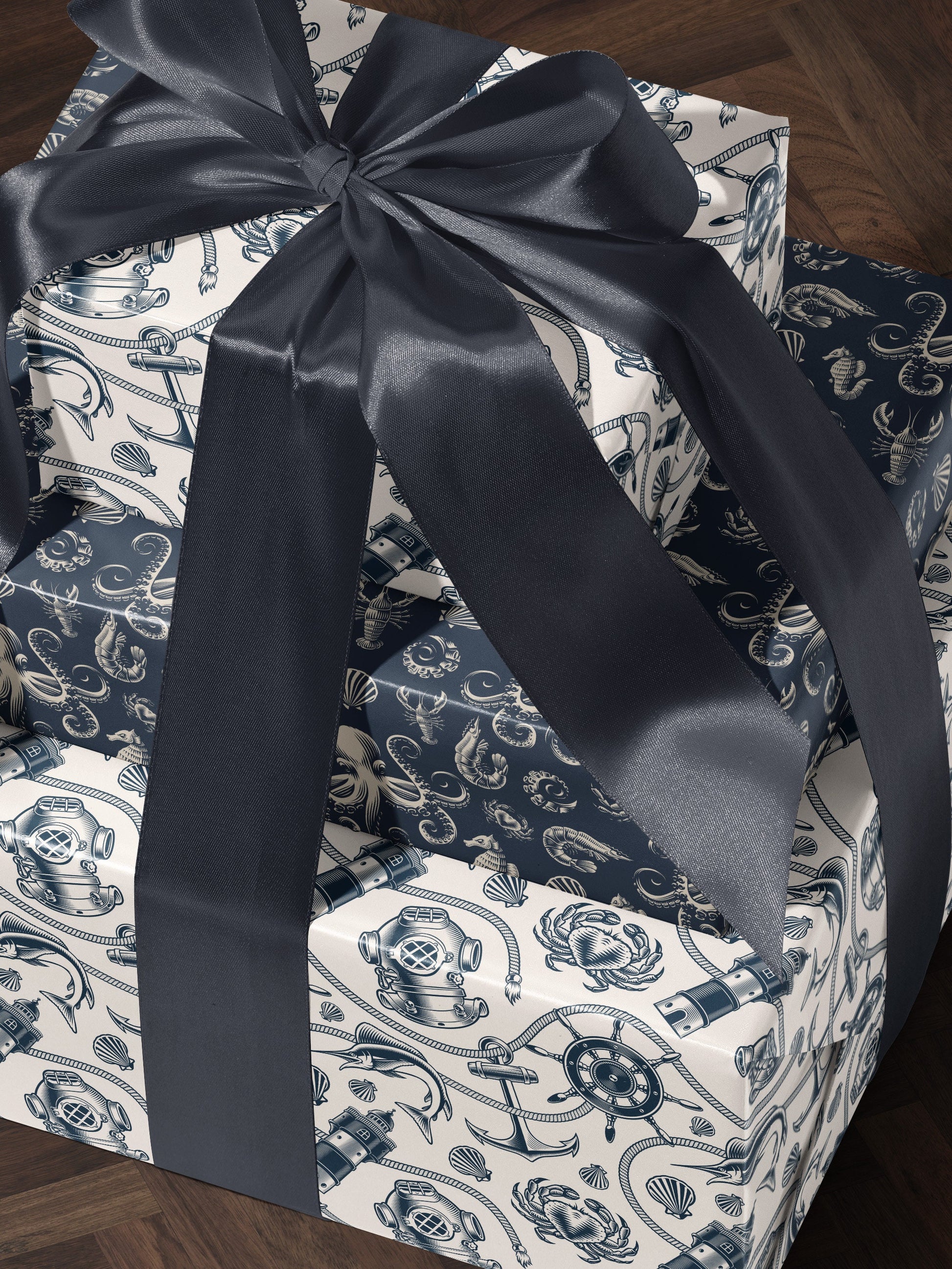 Nautical Wrapping Paper Pattern Wedding Gift Wrapping Paper Nautical Birthday Party Beach Gift Wrap Roll Nautical Theme Baby Shower Gift