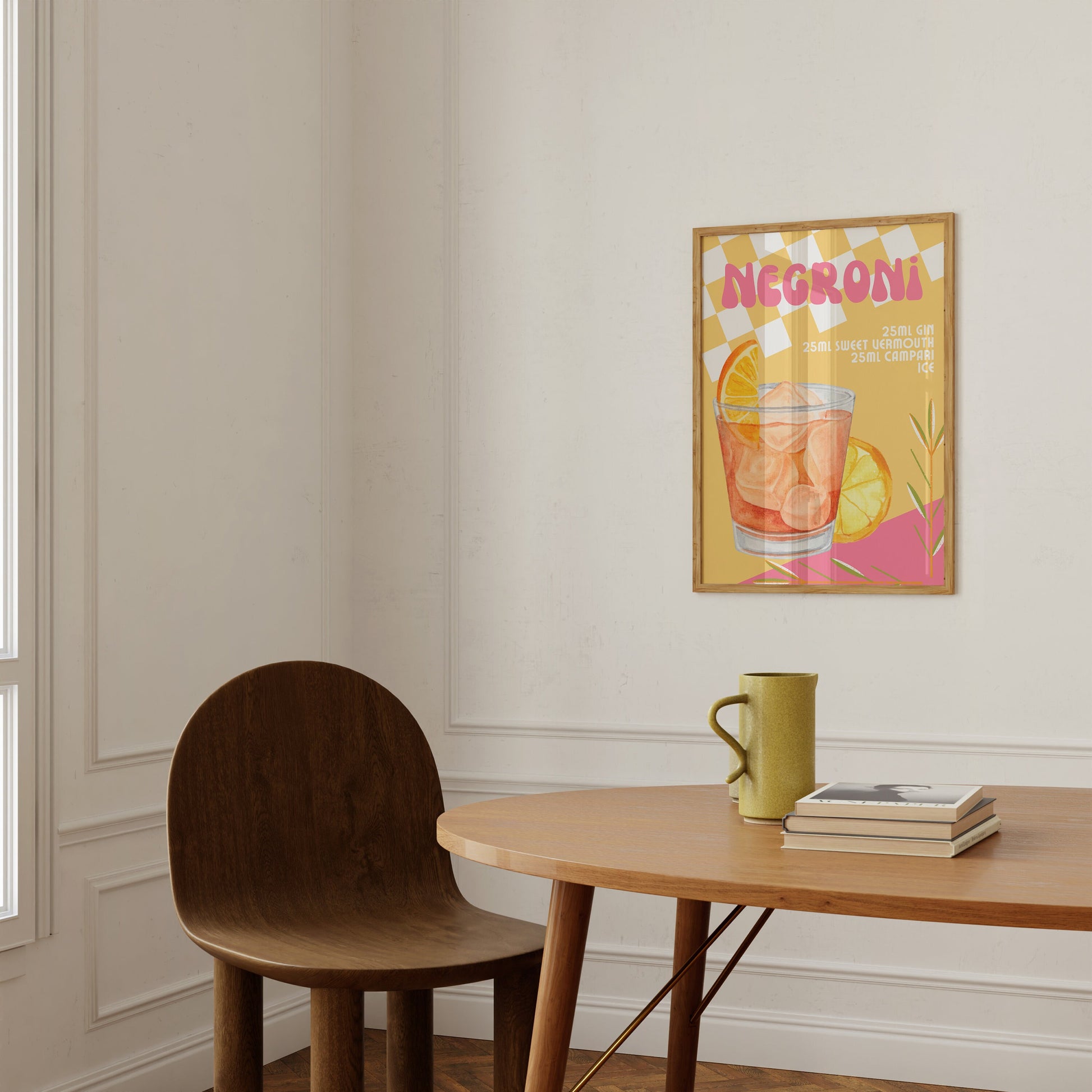 Negroni Retro Cocktail Print - Kitchen Poster, Gin Cocktail Poster, Funky Bar Print, Trendy Alcohol Recipe Art, Colourful Groovy, Orange