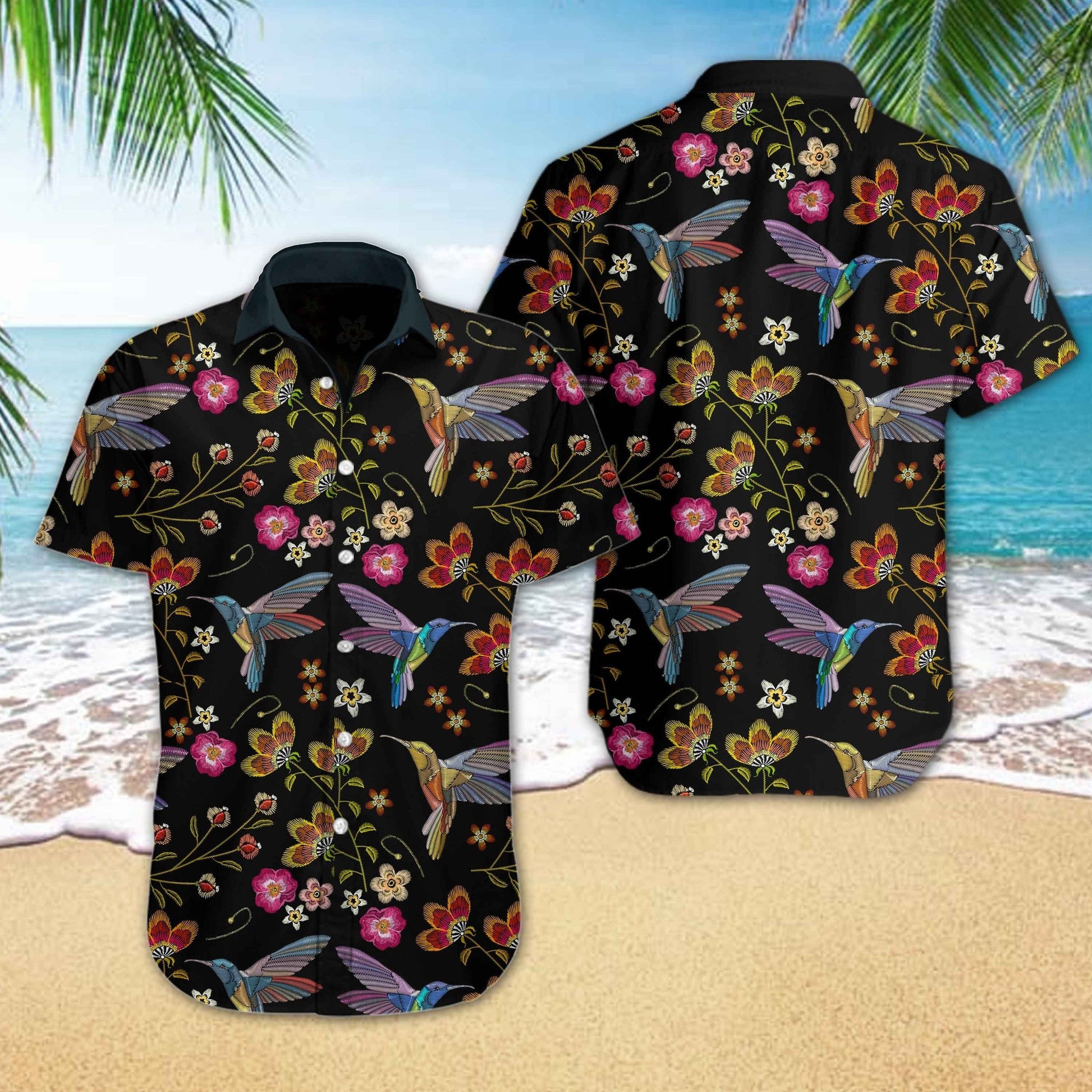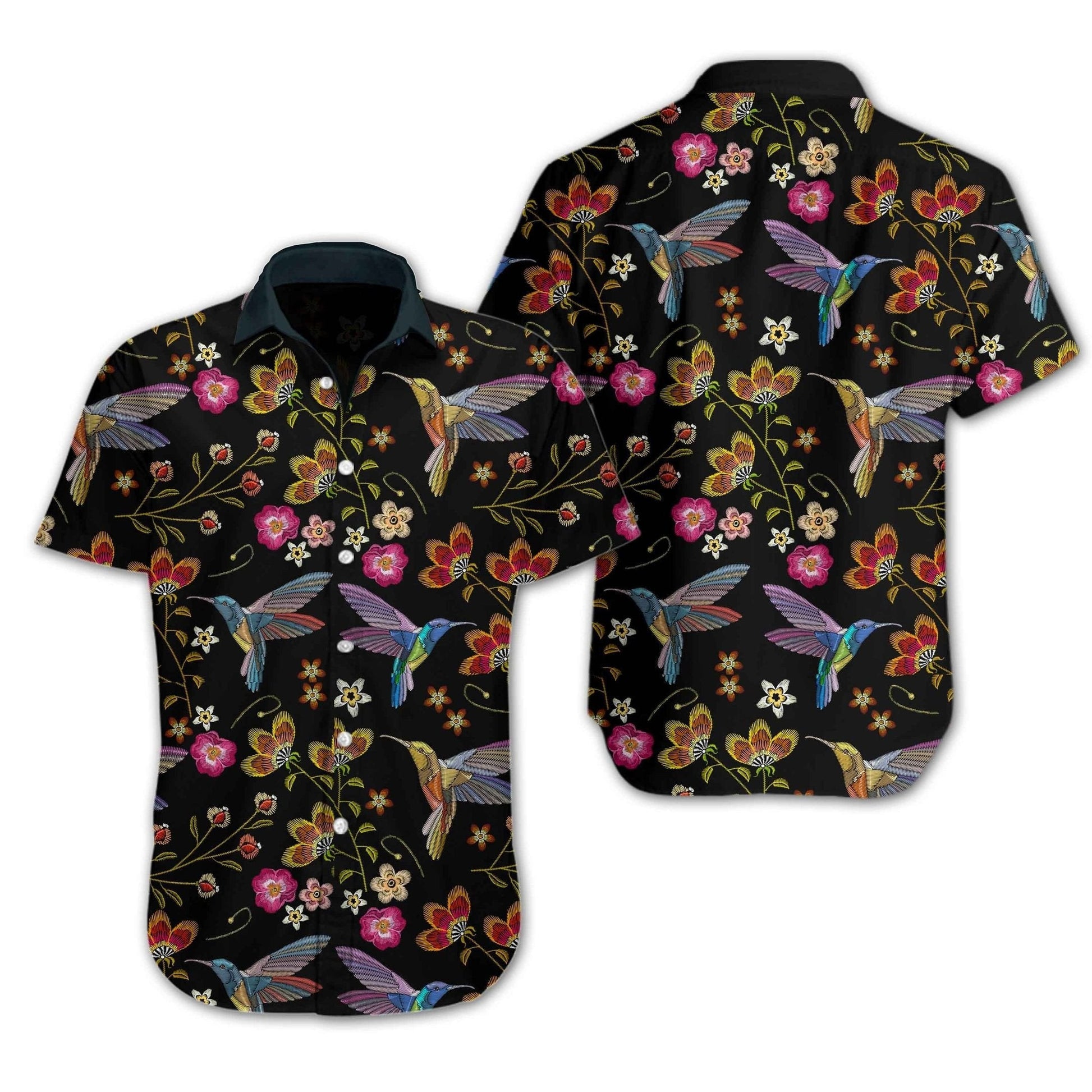 Night Hummingbird Embroidery The Blooming Season Design Hawaiian Shirt, Hawaiian Shirt Gift, Christmas Gift