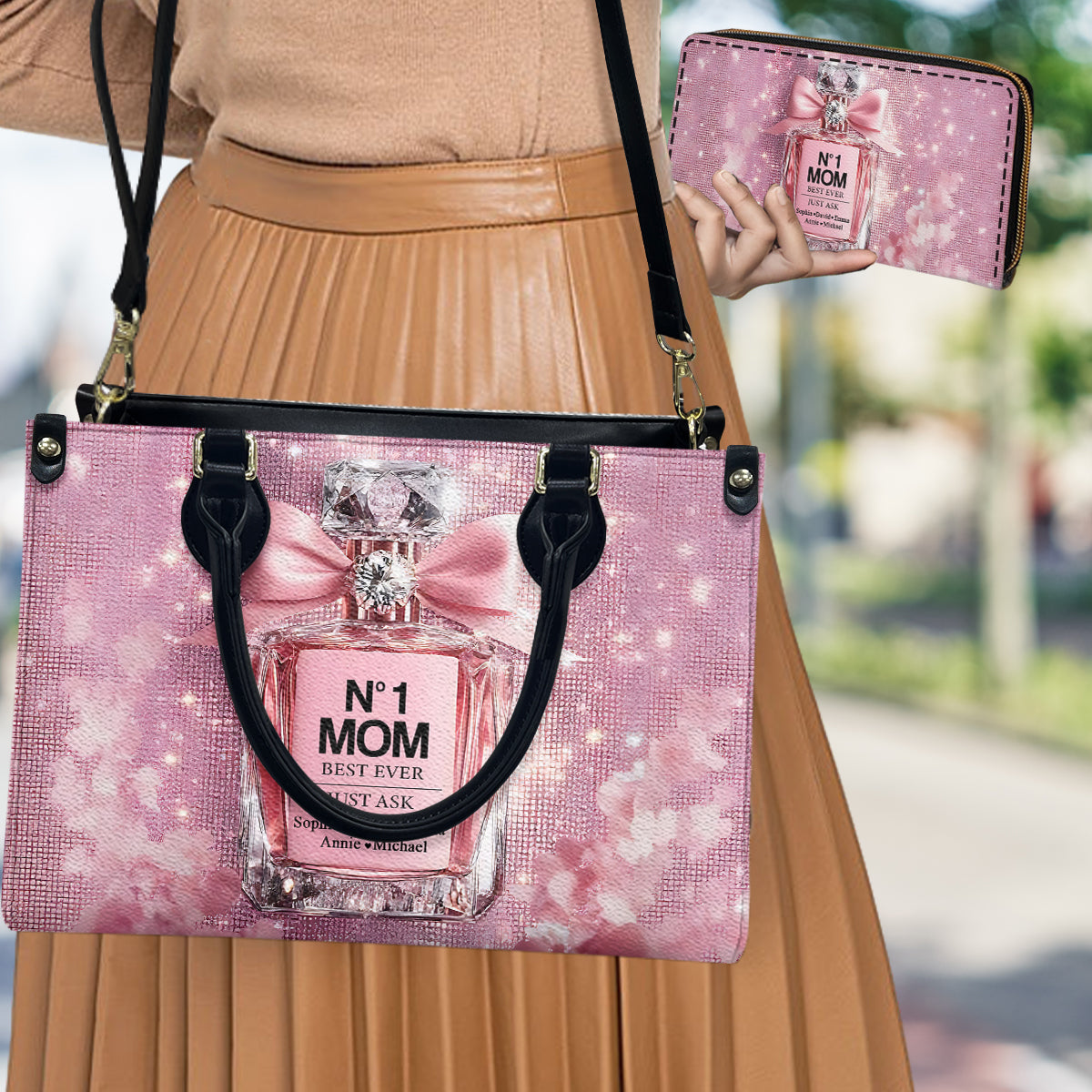 No1 Mom Ever - Personalized Mother Leather Handbag & Leather Long Wallet