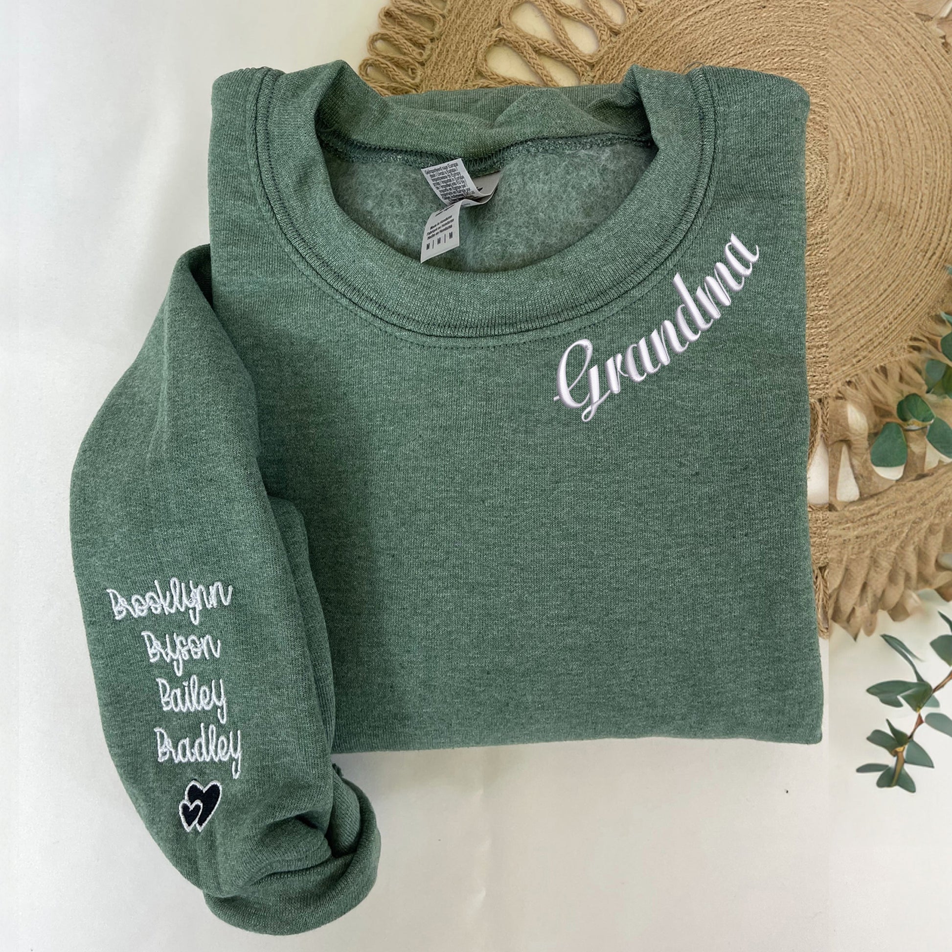 Nonnie Sweatshirt or Hoodie with Embroidered Names on Sleeve