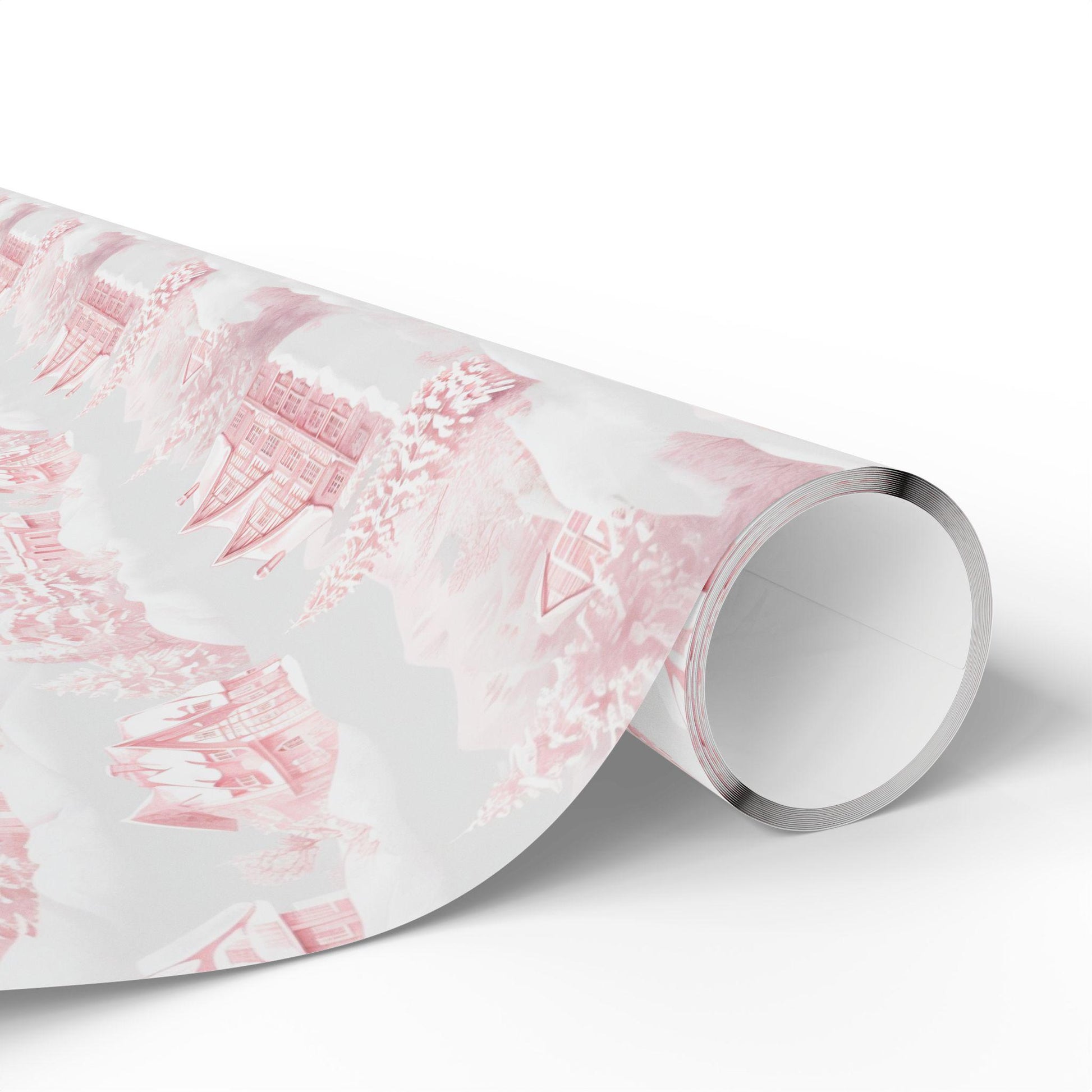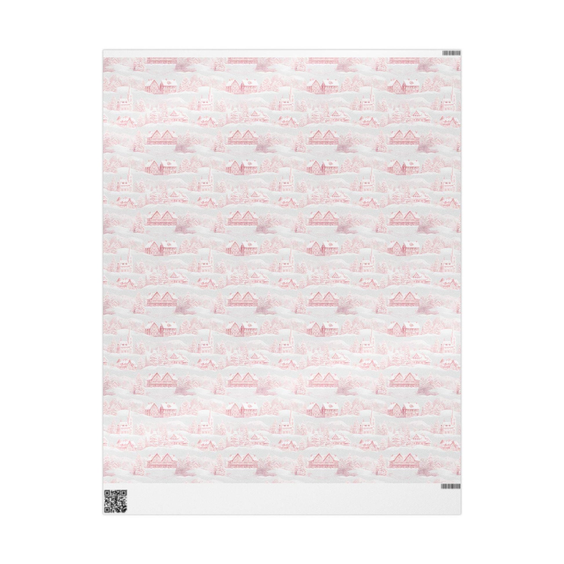 Nordic Christmas Wrapping Paper: Red Winter Houses, Snow Scene
