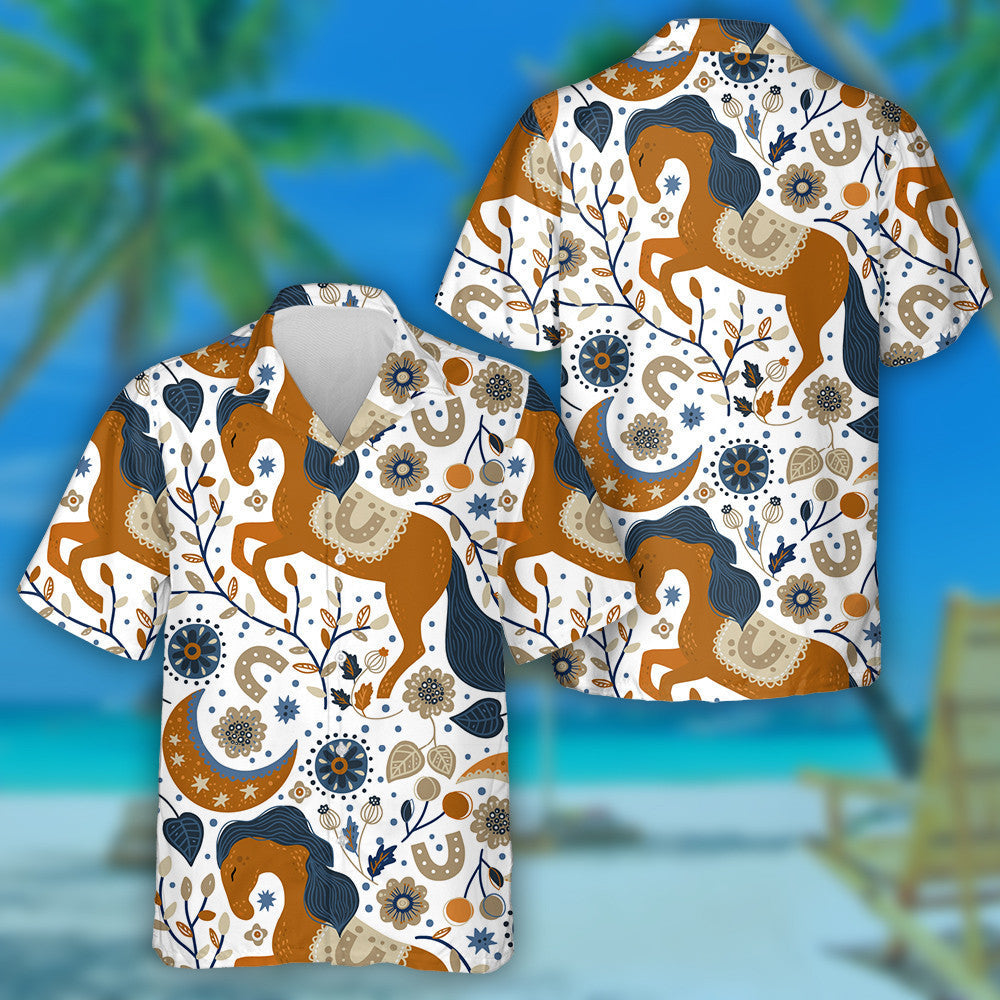 Nordic Scandinavian Horse Animal On A White Hawaiian Shirt, Hawaiian Shirt Gift, Christmas Gift