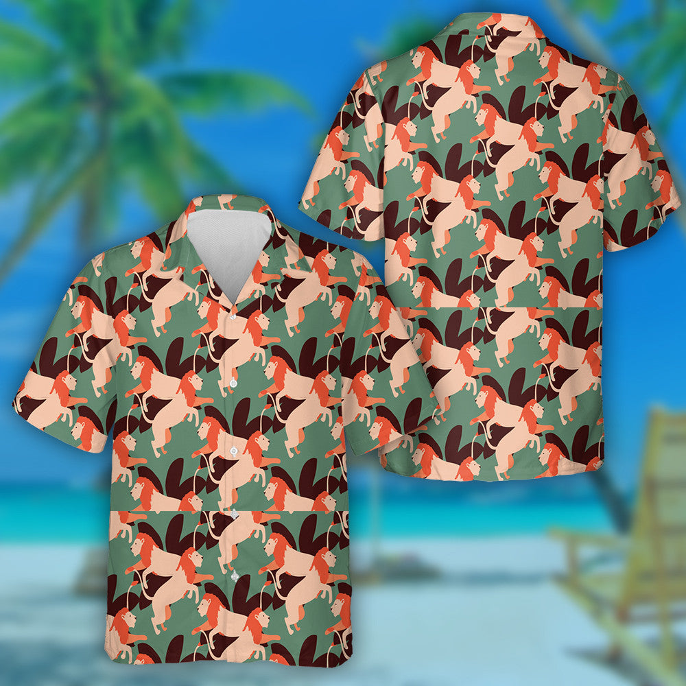Orange Lion Running On Green Background Hawaiian Shirt,Hawaiian Shirt Gift, Christmas Gift