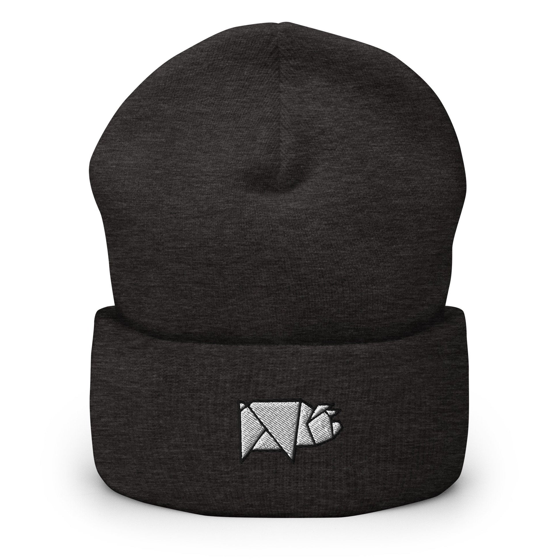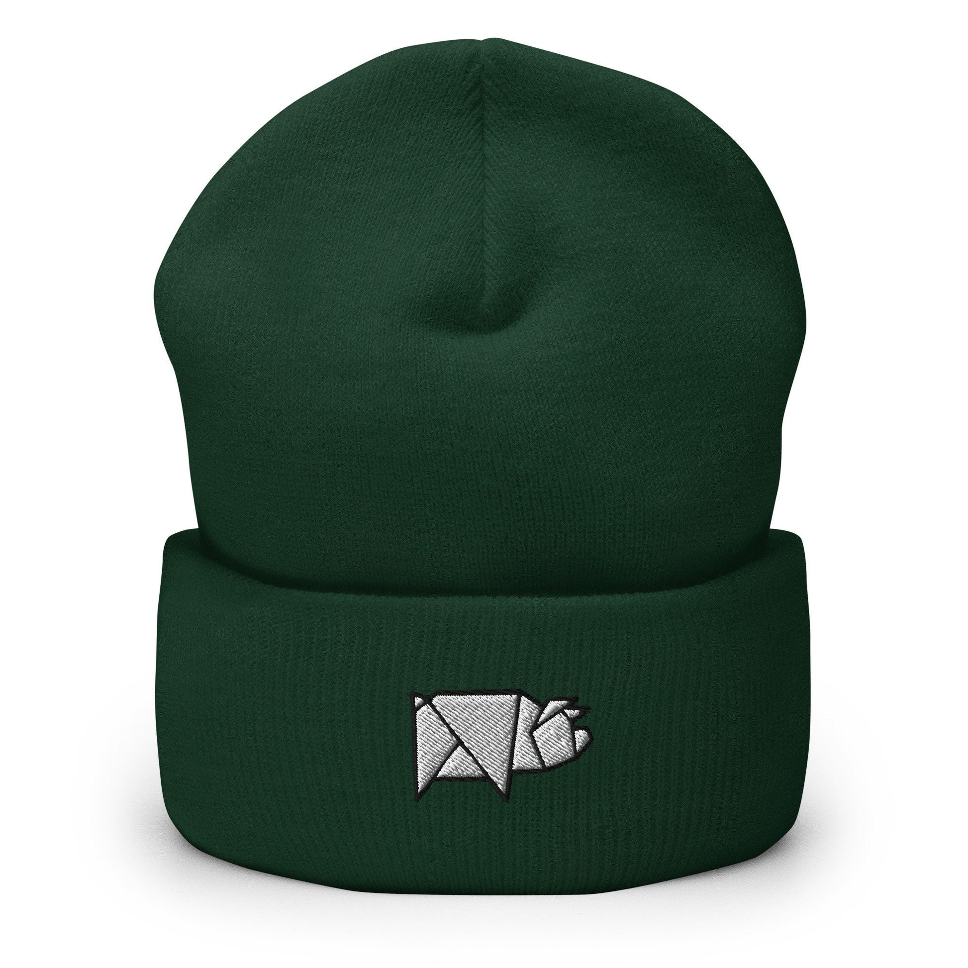 Origami Pig Embroidered Beanie, Handmade Cuffed Knit Unisex Slouchy Adult Winter Hat Cap Gift