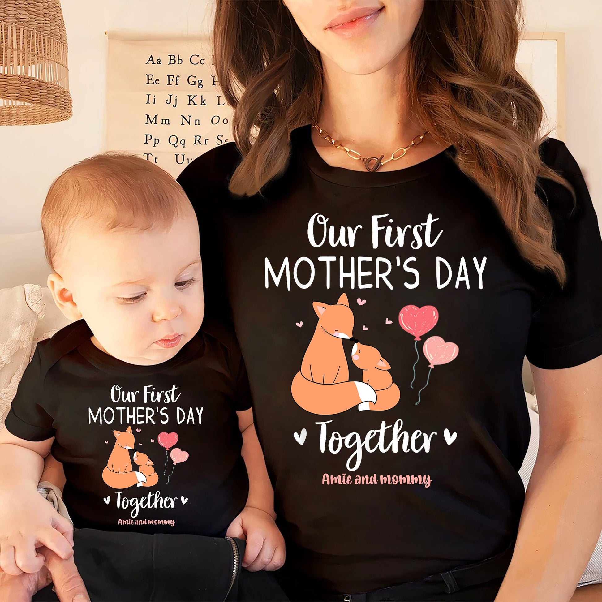 Our First Mother's Day Together Custom Baby and Mommy Names Shirt, Matching Gift Tee Set for Mother’s Day, Mama Bear gift, 1st Mothers Day