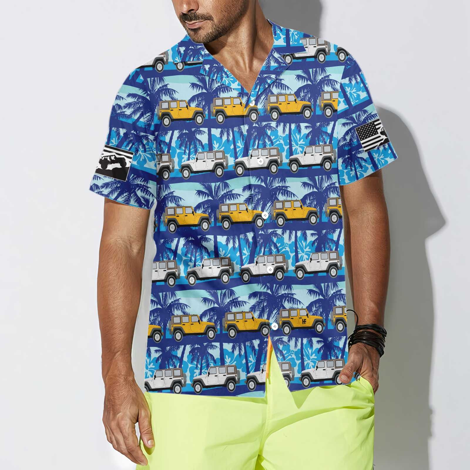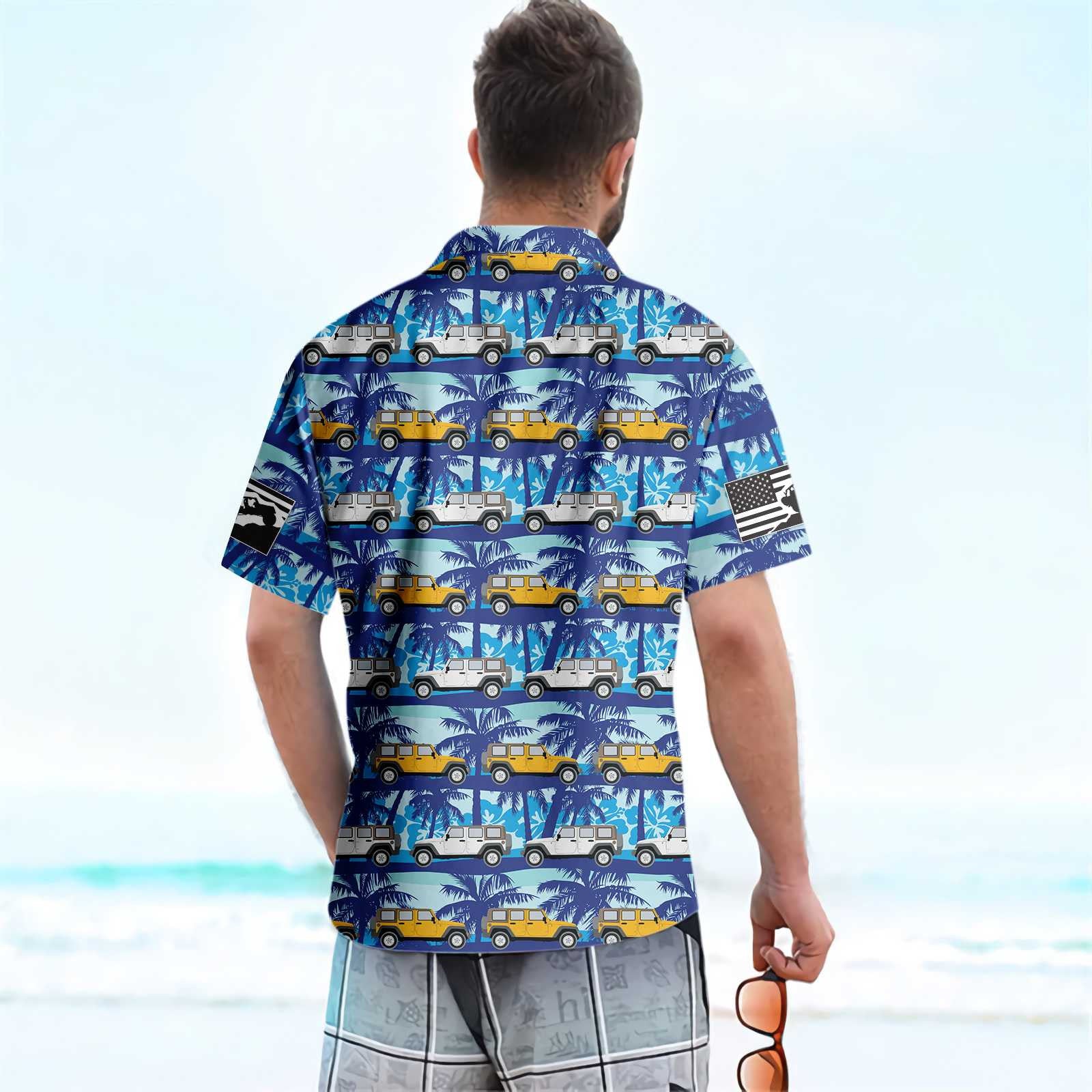 Palm Tree Tropical Blue Jeep Hawaiian Shirt,Hawaiian Shirt Gift, Christmas Gift