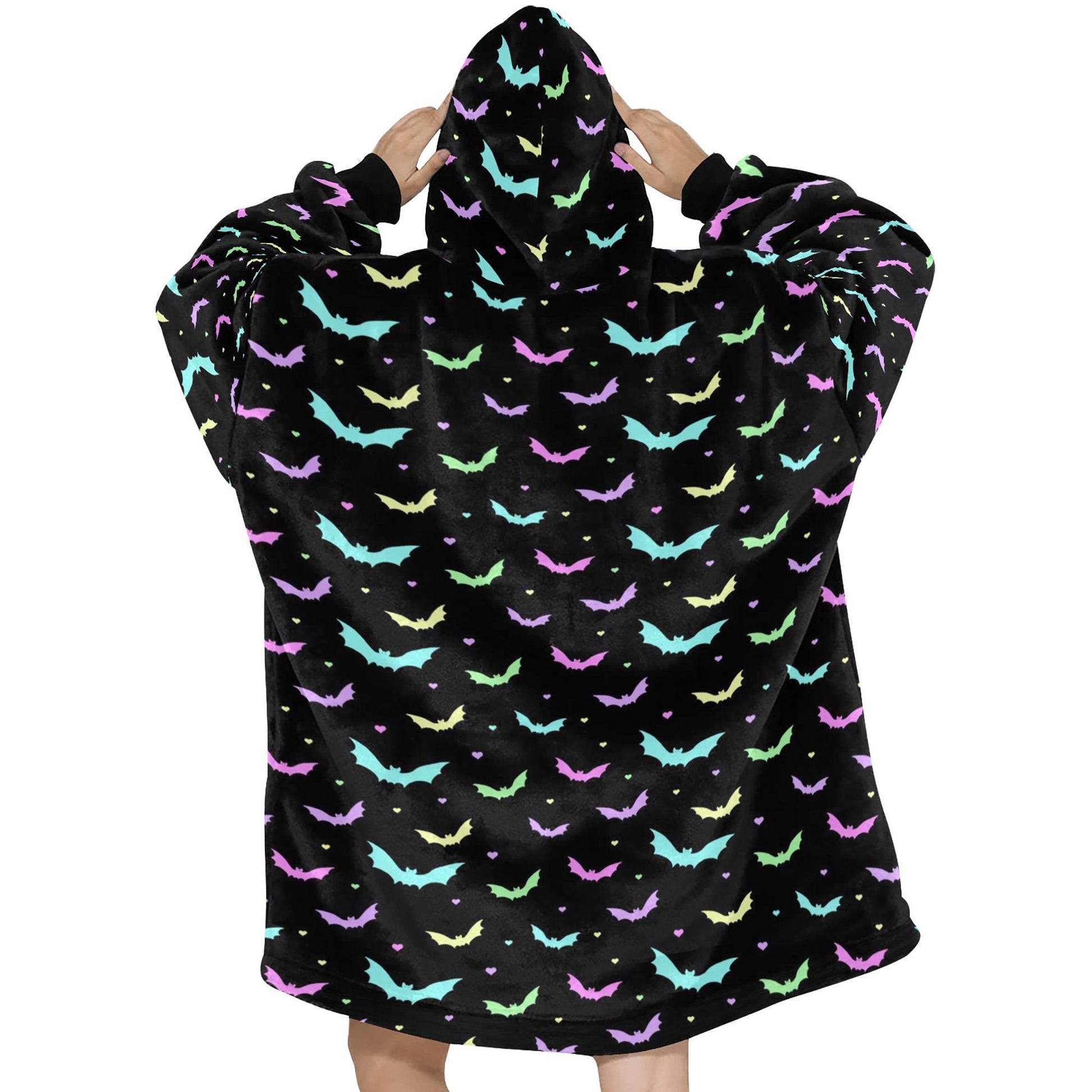 Pastel Goth Bats Spooky Halloween Theme Blanket Hooded Jumper Hoodie Winter Oversized Kids Adults