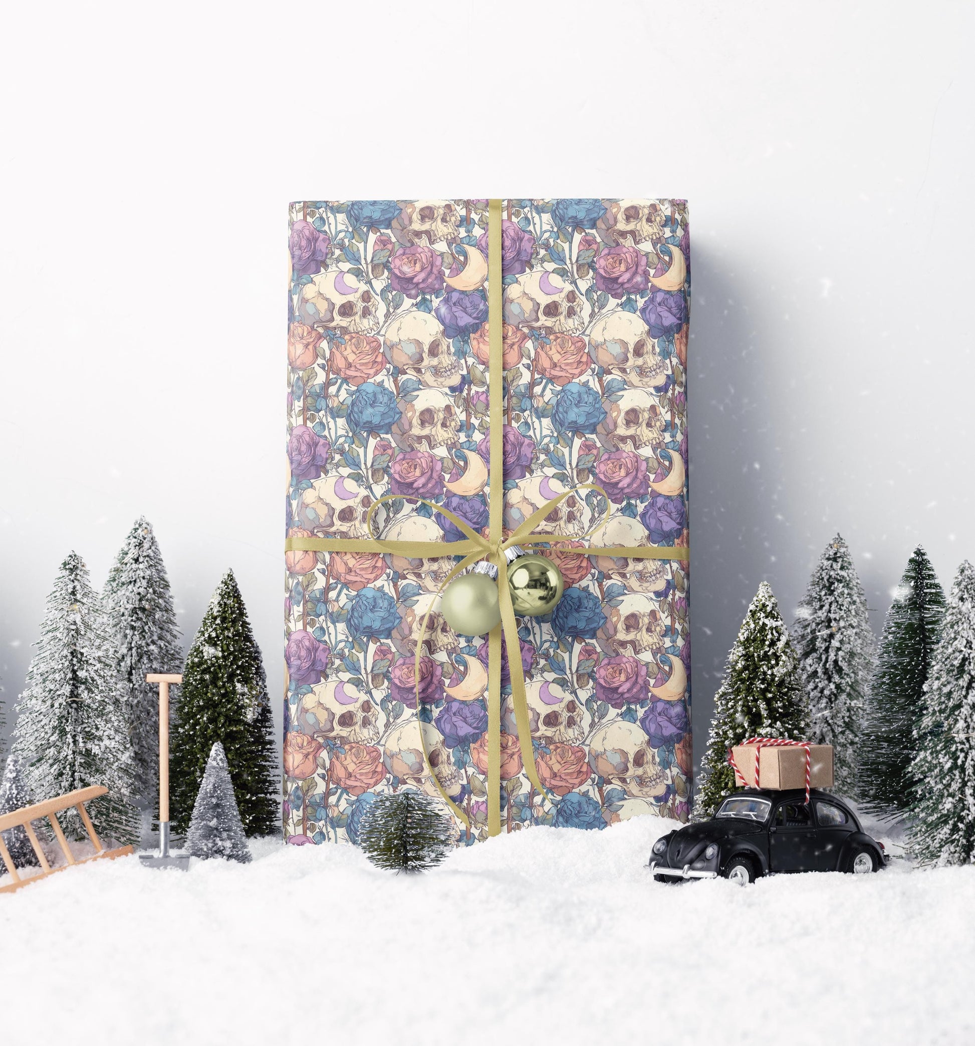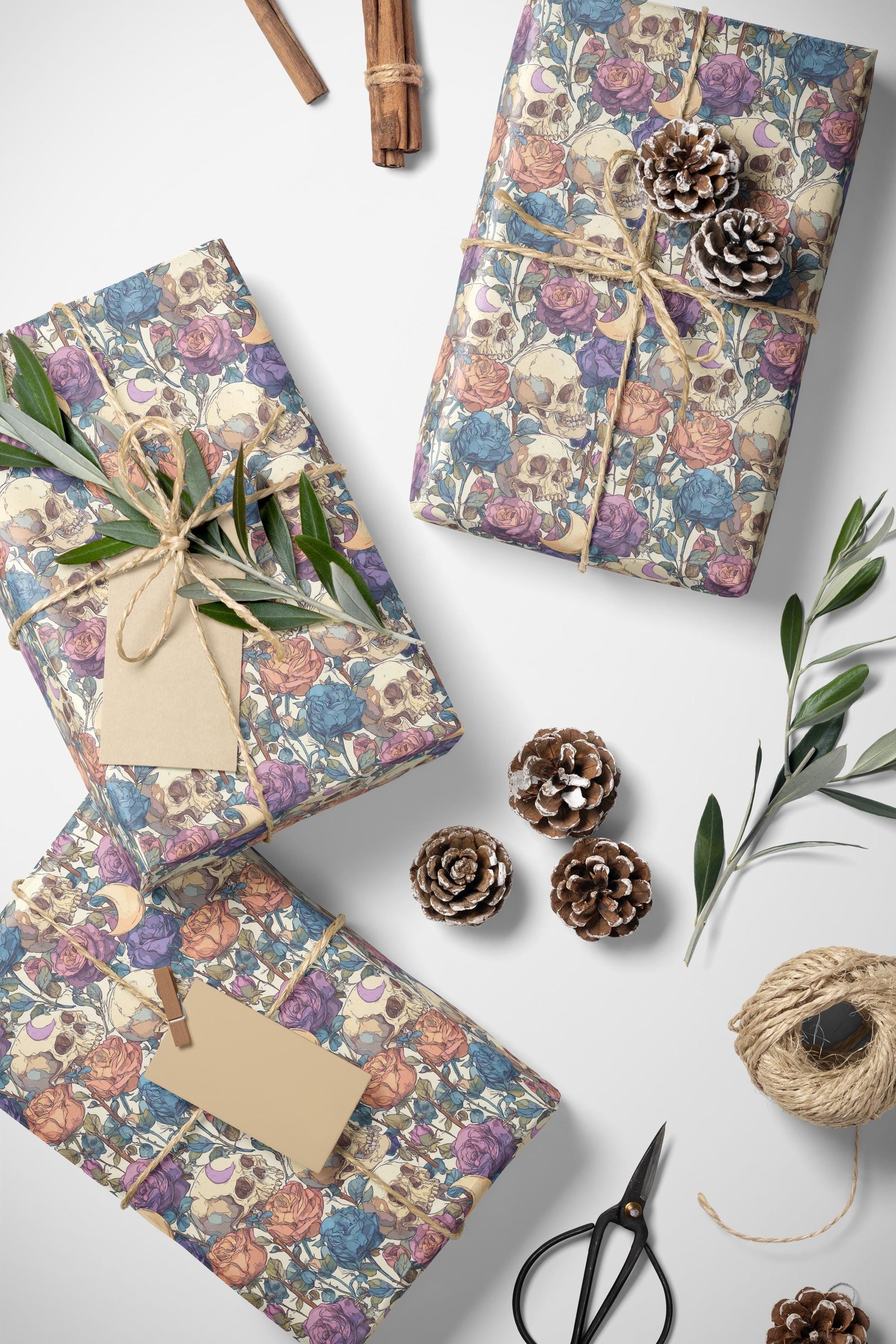 Pastel Goth Halloween Wrapping Paper Roll Watercolor Bats Skeletons Moons Witch Alternative Style #8