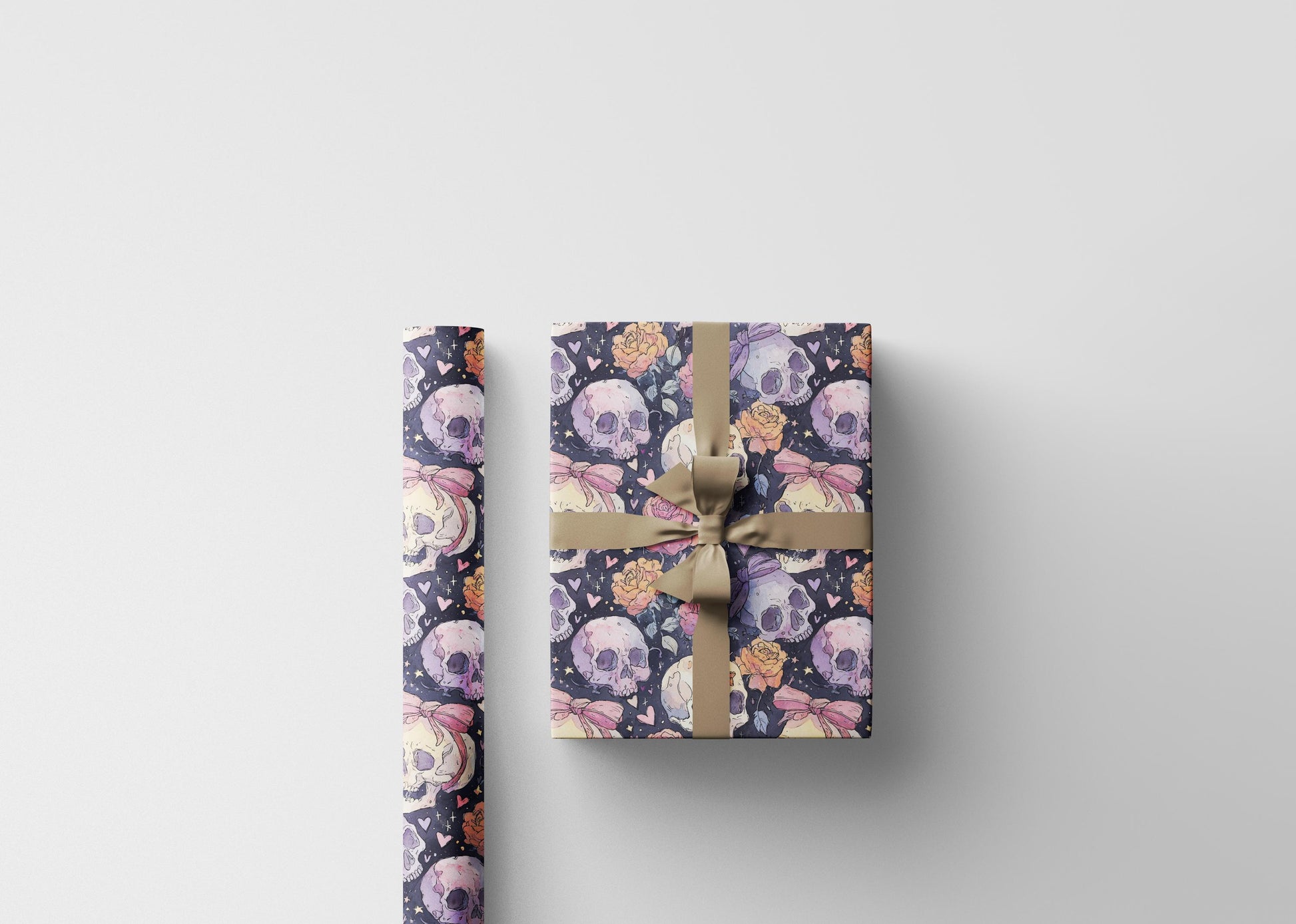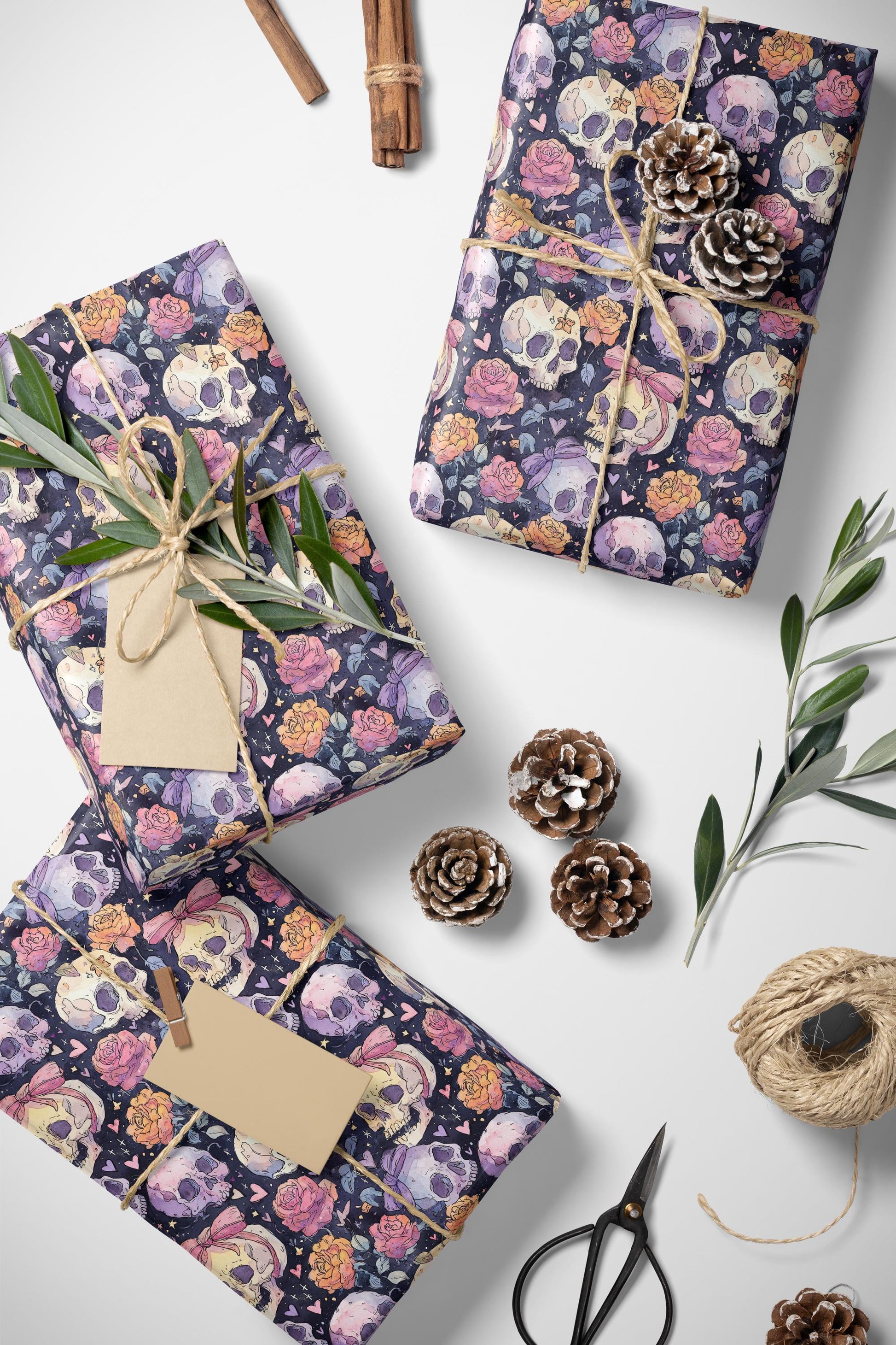 Pastel Goth Watercolor Halloween Wrapping Paper Roll Spooky Cute Skeleton Ghost Bat Witch Print #14