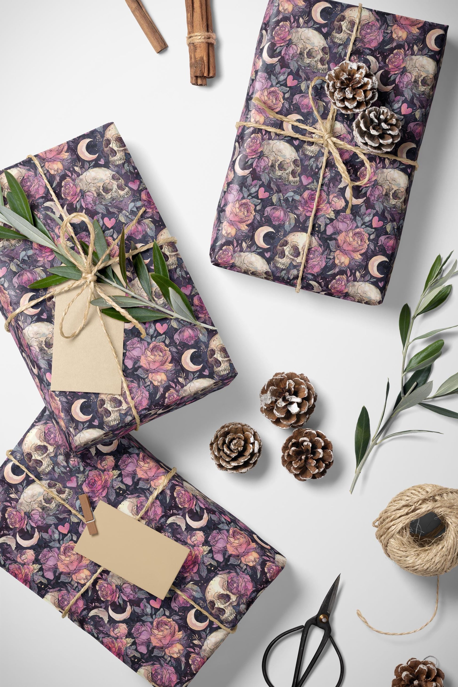Pastel Goth Watercolor Wrapping Paper Roll Halloween Spooky Cute Alternative Goth Ghost Bat Print #7