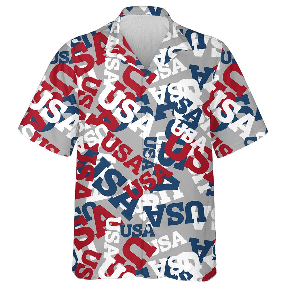 Patriotic Color USA Text Gray Background Pattern Hawaiian Shirt, Hawaiian Shirt Gift, Christmas Gift