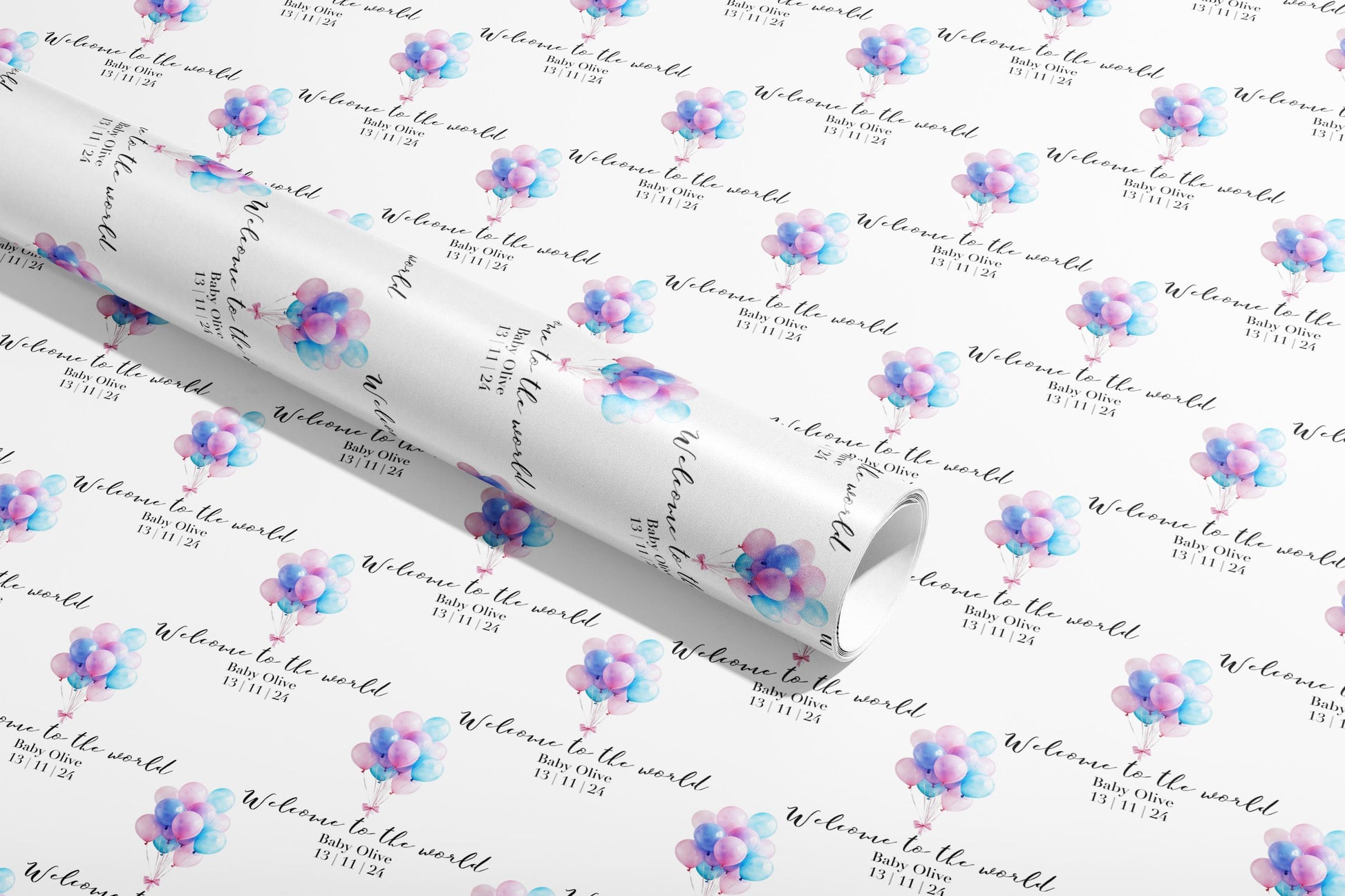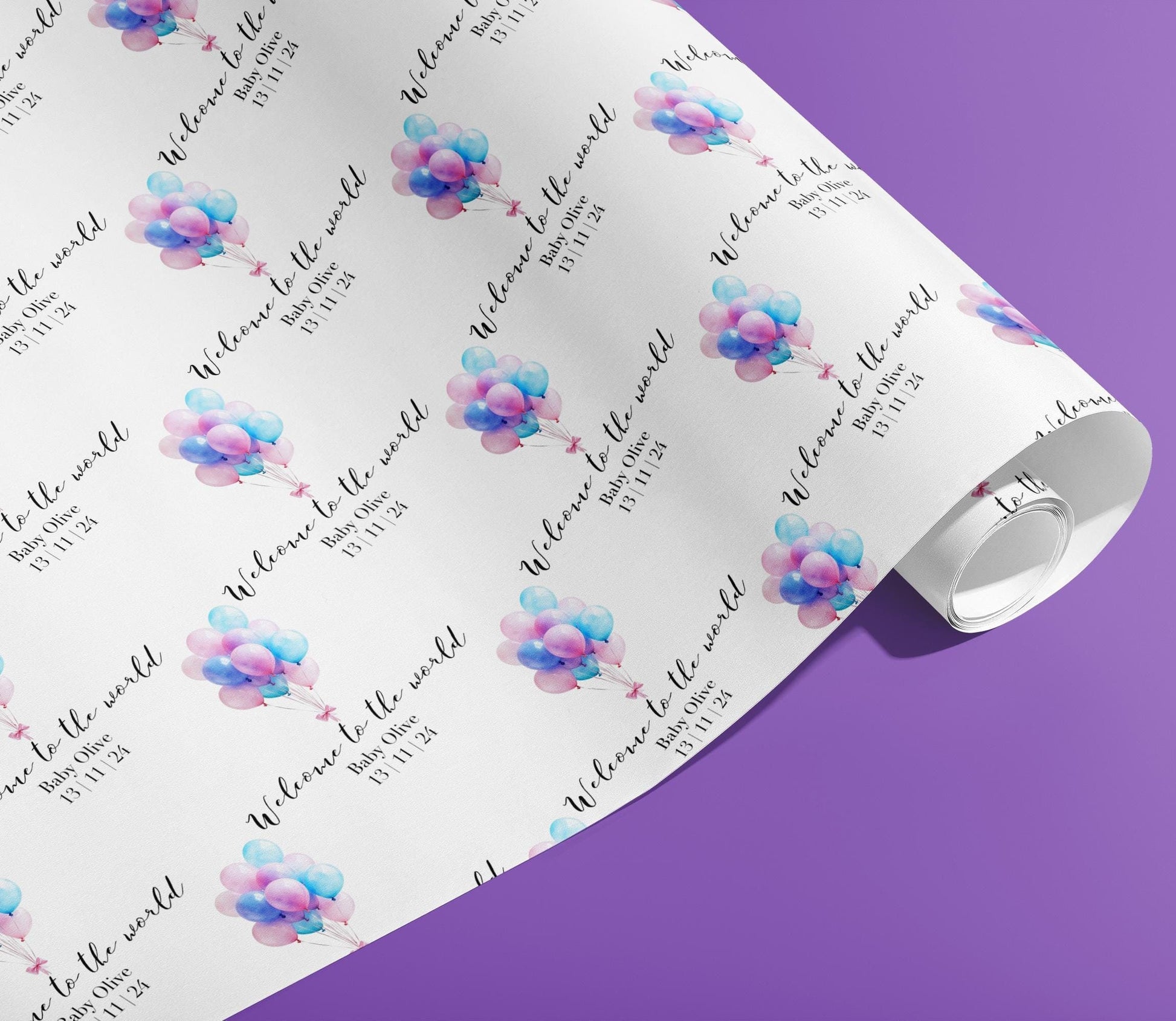Personalised Baby Shower Gift Wrap, Wrapping Paper, Balloons, Your Name, Customised, Wedding, Party, Your Age, Anniversary, Recycle, Eco