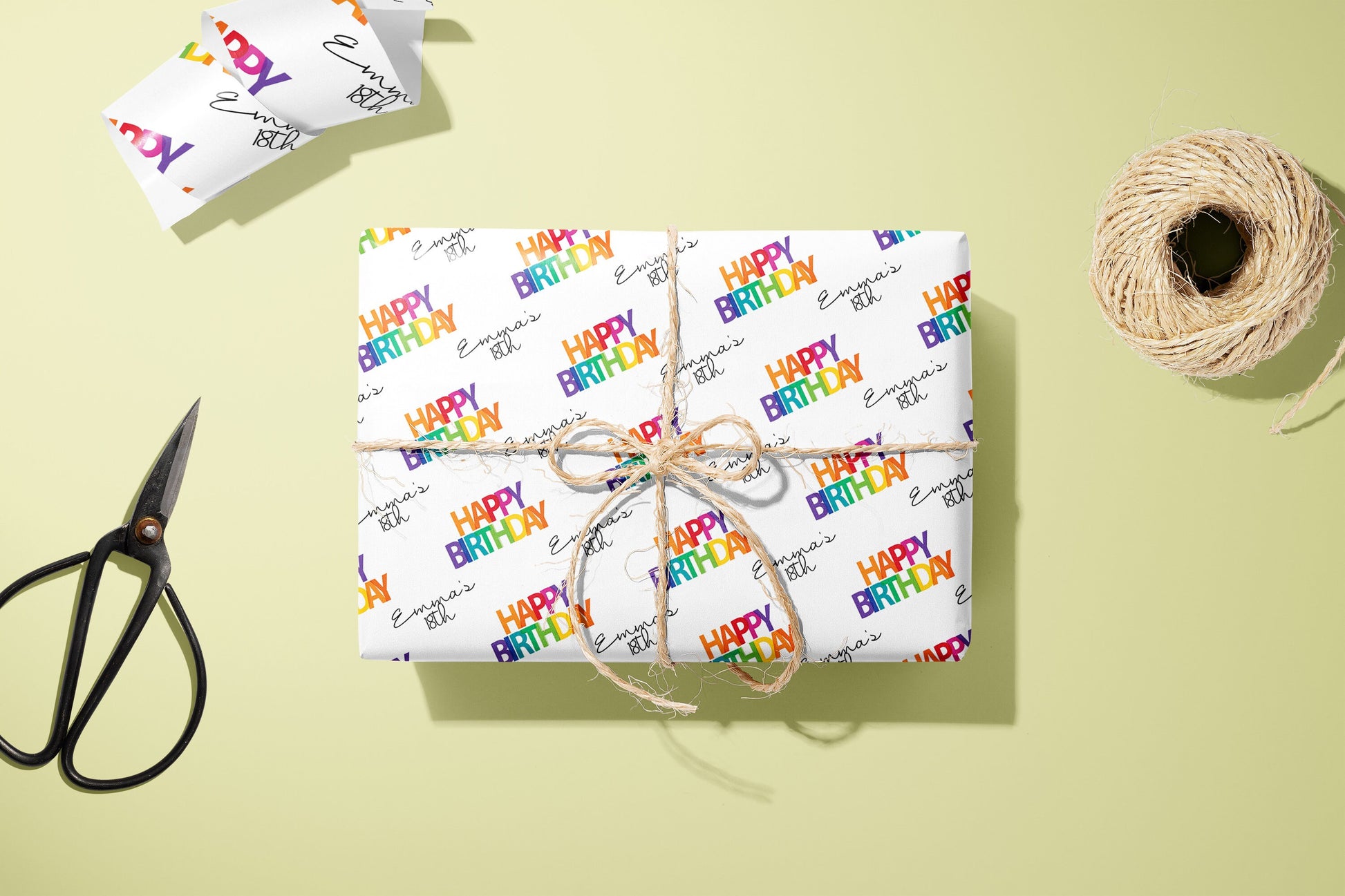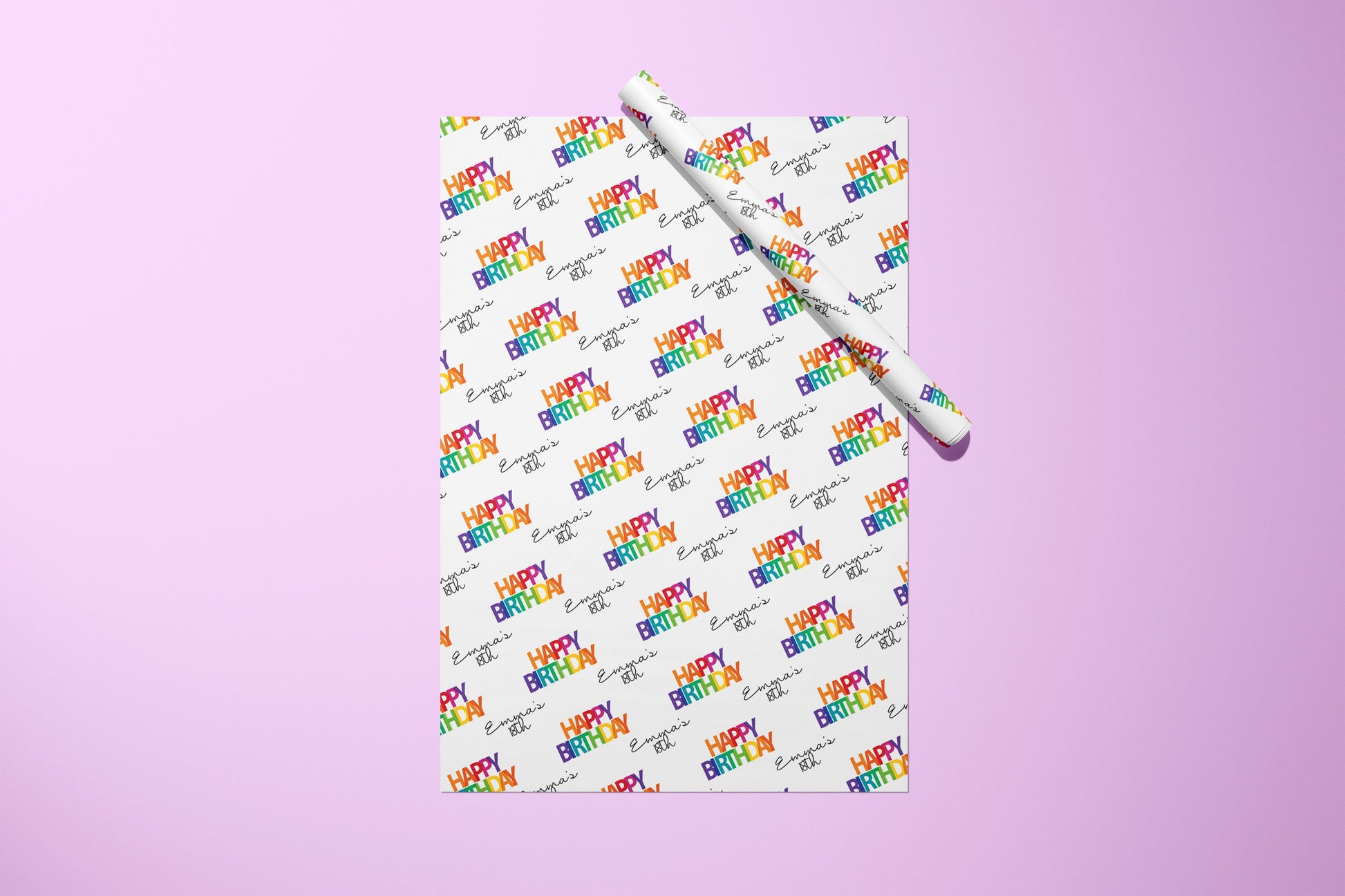 Personalised Birthday Gift Wrap, Wrapping Paper, Rainbow, You Name, Customised, Wedding, Party, Paper, Your Age, 18, 21, 30, 40, 50.