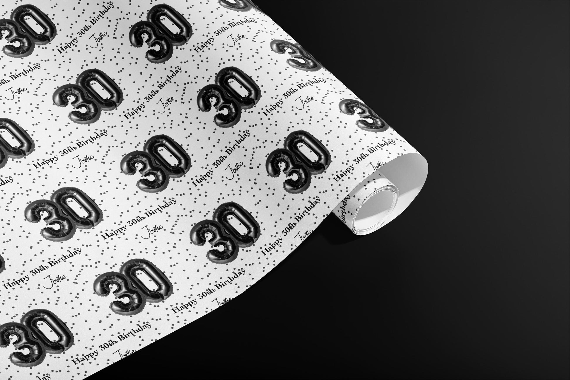 Personalised Birthday Gift Wrap, Wrapping Paper, Your Age, Your Name, Customised, Wedding, Party Hat, Paper, Your Age, Recyclable, Black