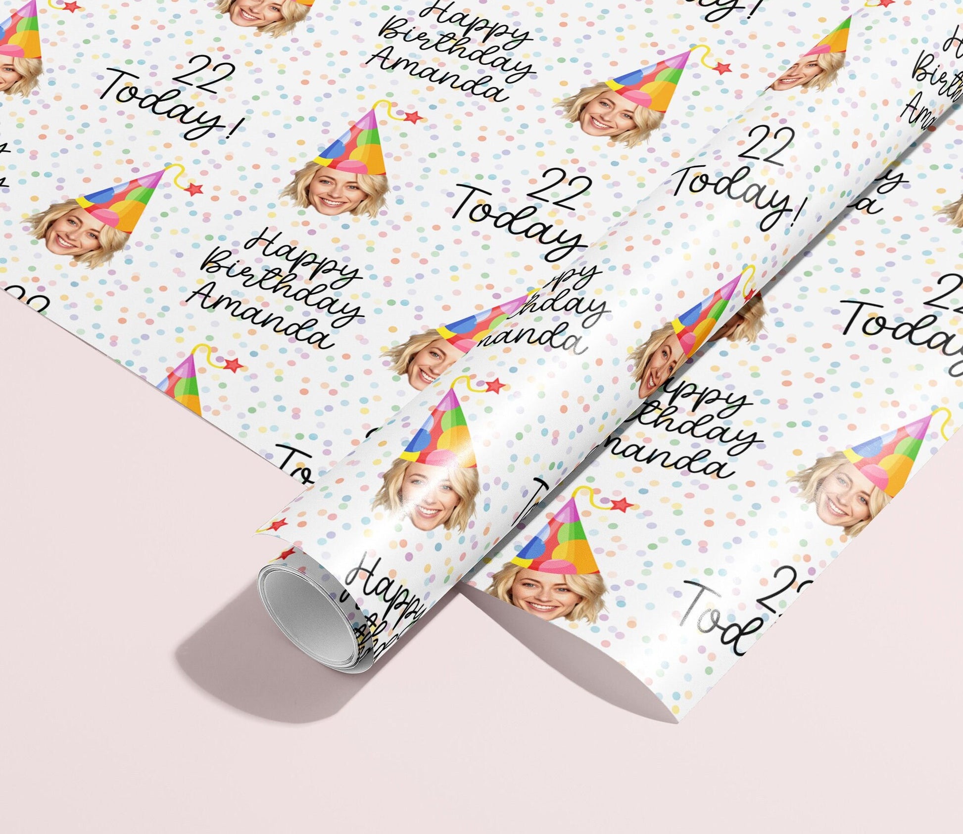Personalised Birthday Gift Wrap, Wrapping Paper, Your Photo, Your Name, Customised, Wedding, Party Hat, Paper, Your Age, Eco, Recyclable