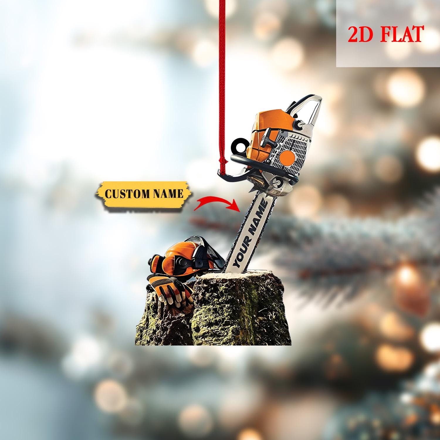 Personalized Arborist Chainsaw 2D Ornament, Tree Trimmer Cutter Decor, Unique Handyman Holiday Gift, Arborist Gear & Equipment Ornament