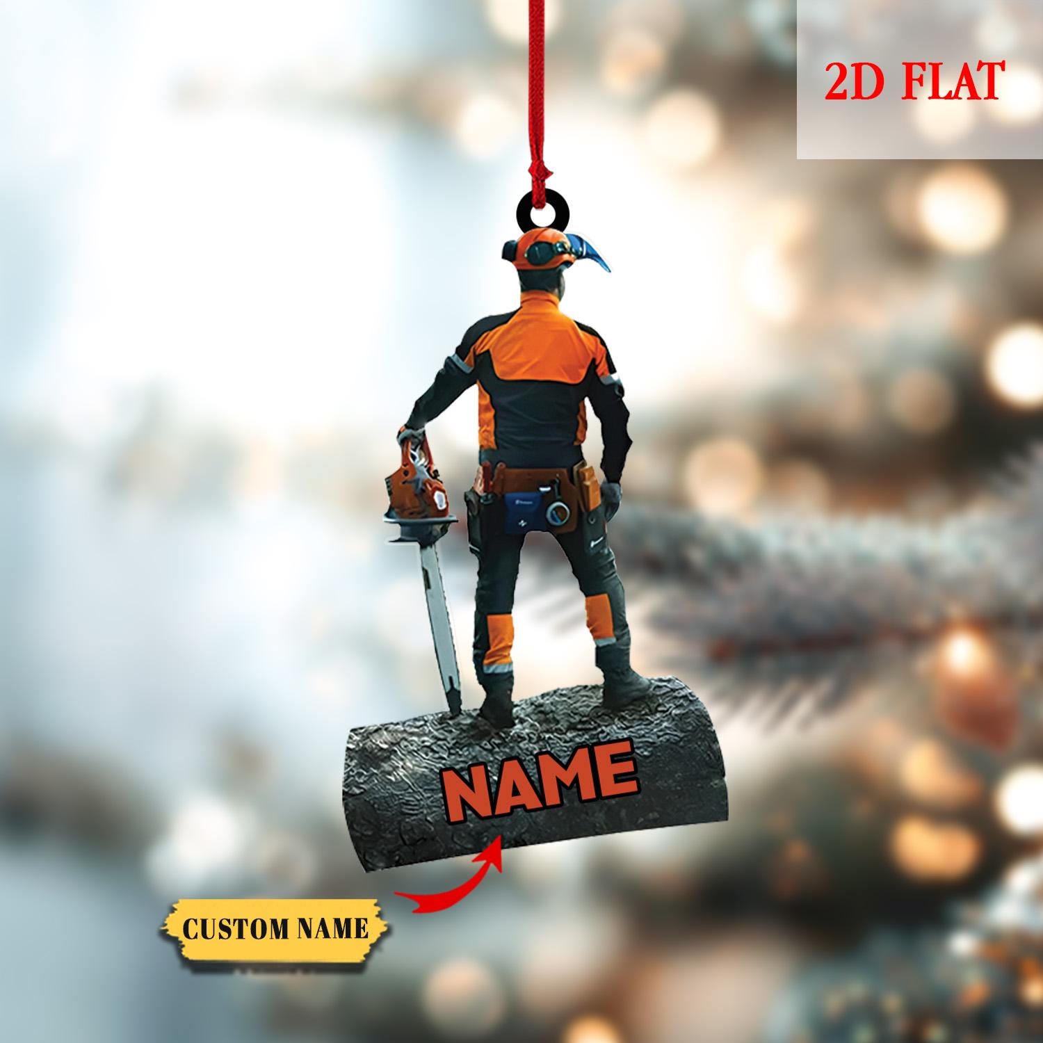 Personalized Arborist Christmas Ornament, Logger Hanging Ornament, Tree Trimmer Cutter Decor, Unique Handyman Holiday Gift for Men