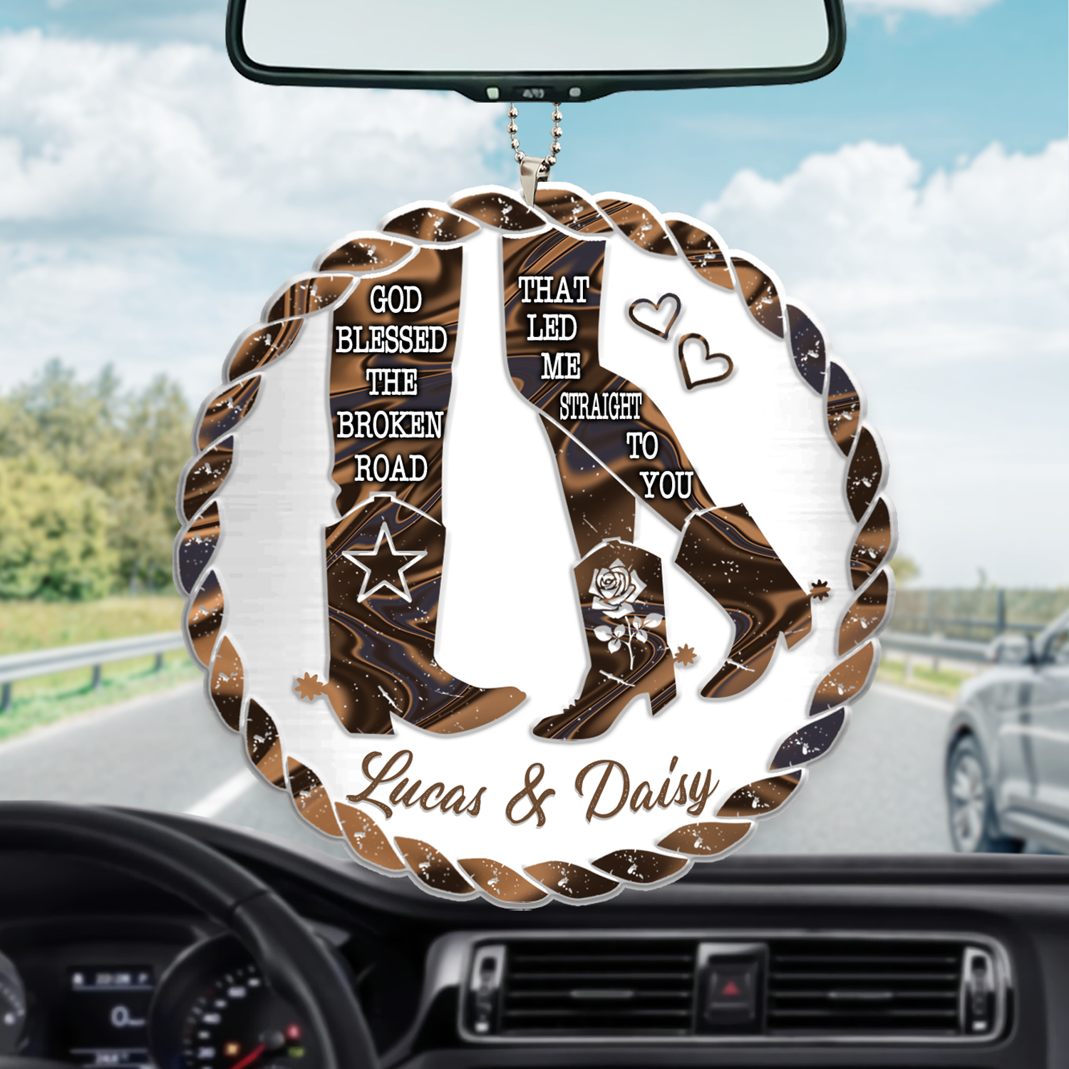 Personalized Car Hanging Ornament For Couple, God Blessed Cowboy And Cowgirl, Valentine Car Decoration, Ornament For Husband Wife, Christmas Decoration
