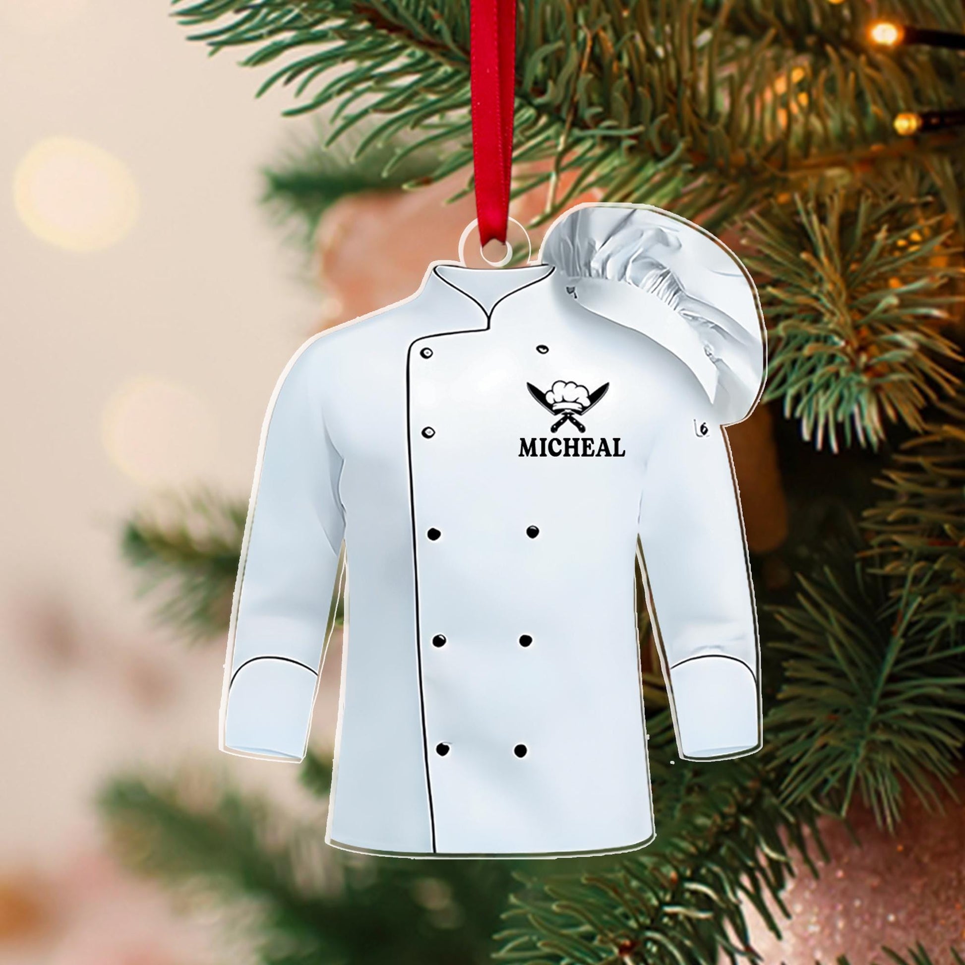 Personalized Chef Uniform 2D Flat Ornament, Custom Chef Hat Ornament Love Kitchen, Christmas Gift For Master Chef Ornament