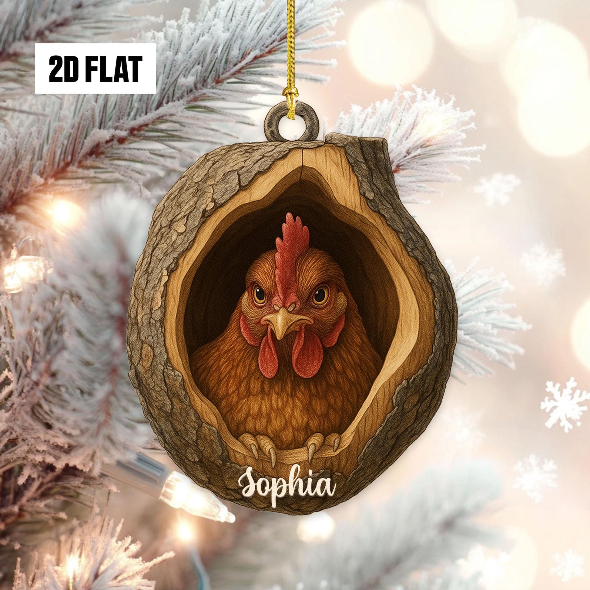 Personalized Chicken 2D Flat Ornament, Custom Farmhouse Christmas Tree Ornament, Farm Christmas Home Decor, Xmas Gift for Farmer