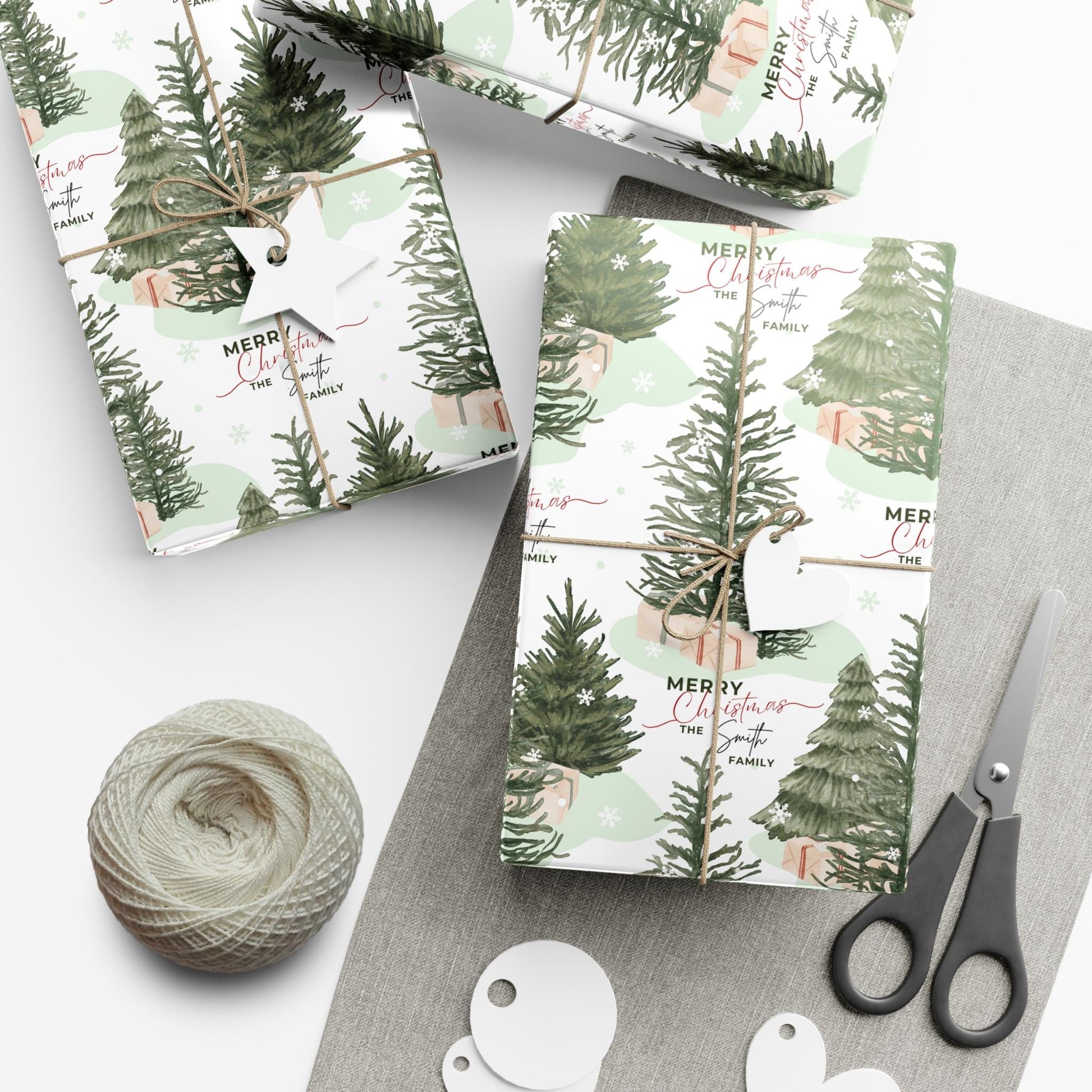 Personalized Christmas Tree Gift Wrapping Papers - Family Name Christmas Gift wrap - Classic Last Name Gift Wrap - Simple Gift Wrap