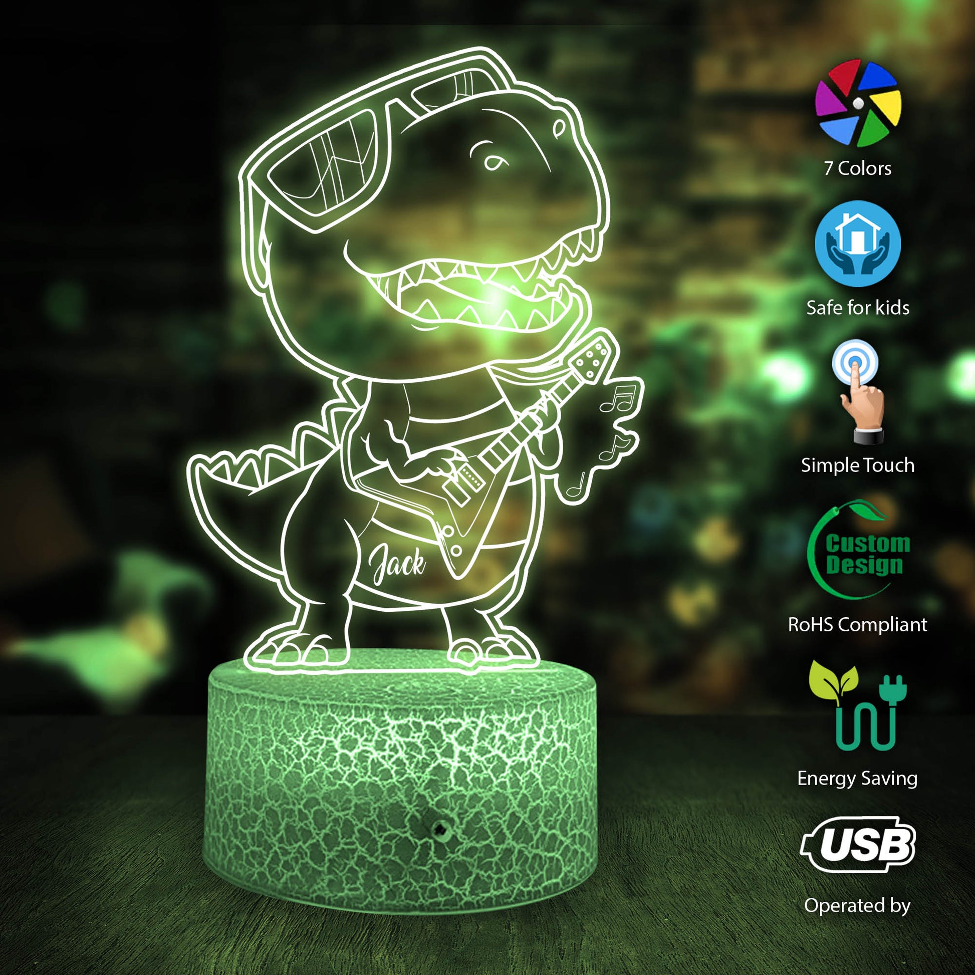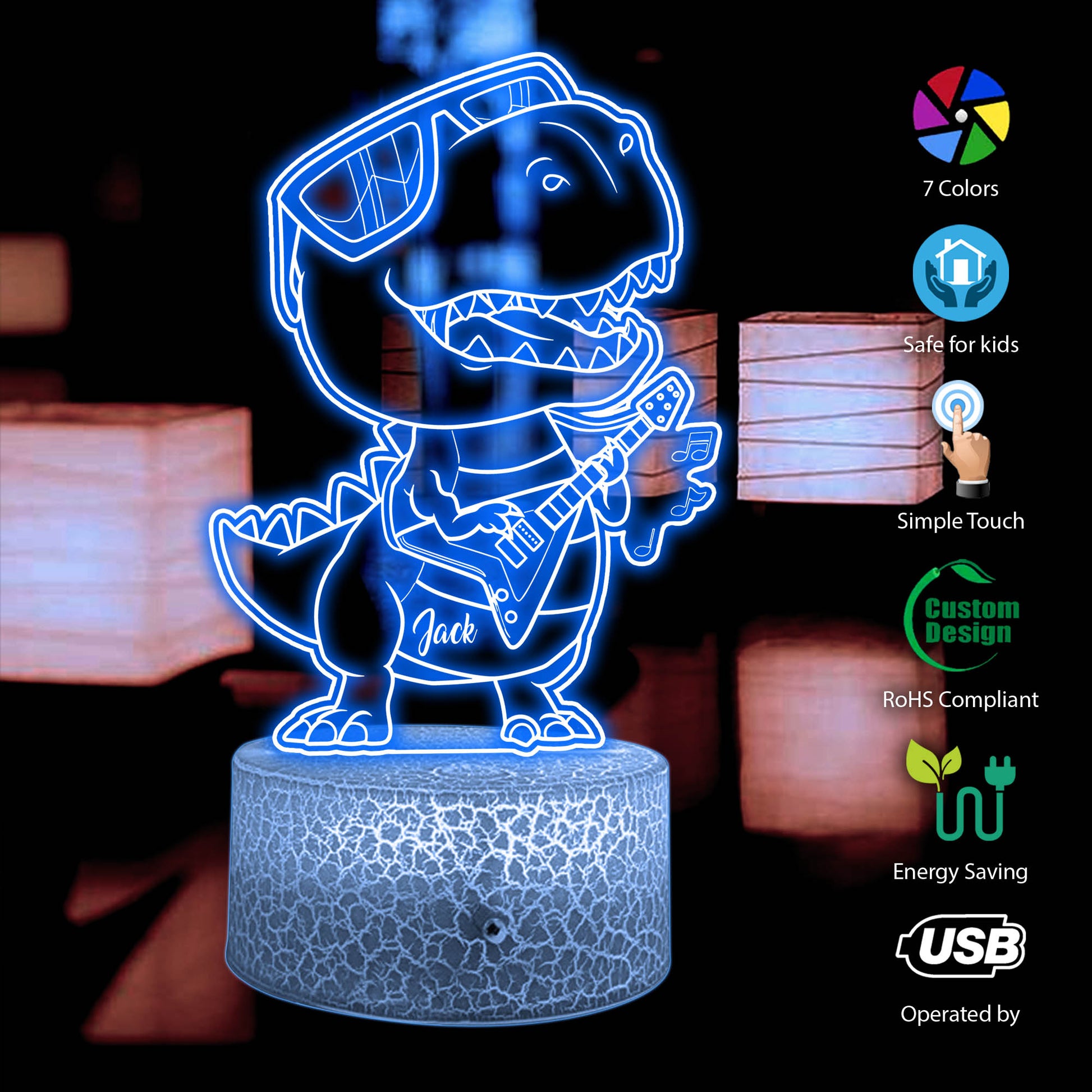Personalized Cool Dinosaur Nigh Light, Custom dinosaur night light, Kids acrylic night light, bedroom decor, Dinosaur LED Night Light