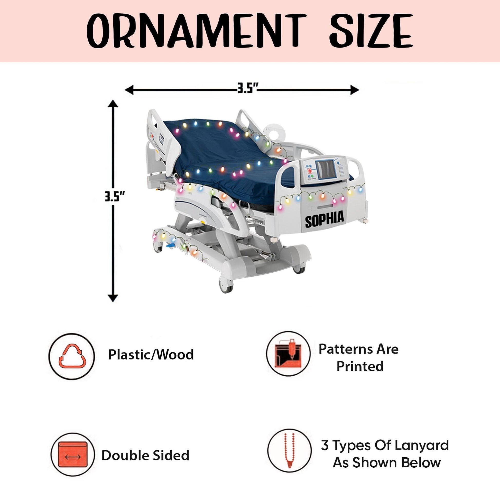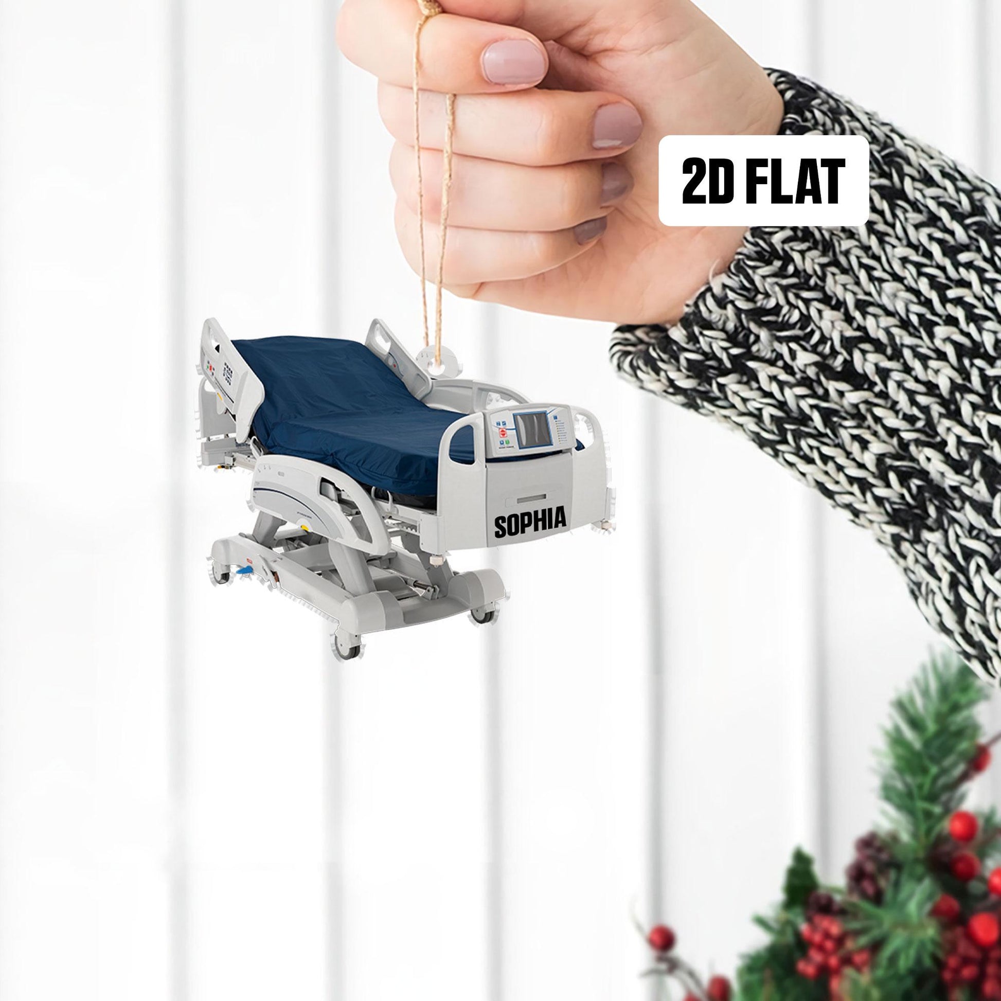 Personalized Corporation Stretcher Patient Ornament, Surgery Medicine Hospital Bed Intensive Care Unit Xmas Ornament, Hospital Bed Ornament