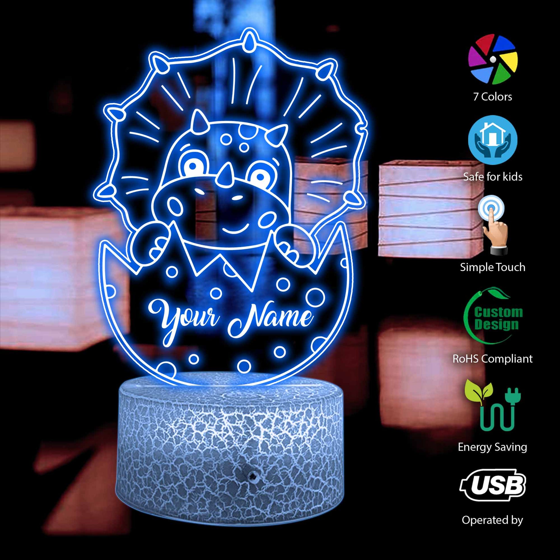 Personalized Cute Dinosaur Eggs Nigh Light, Custom dinosaur light, Kids acrylic night light, bedroom decor, Dinosaur LED Night Light