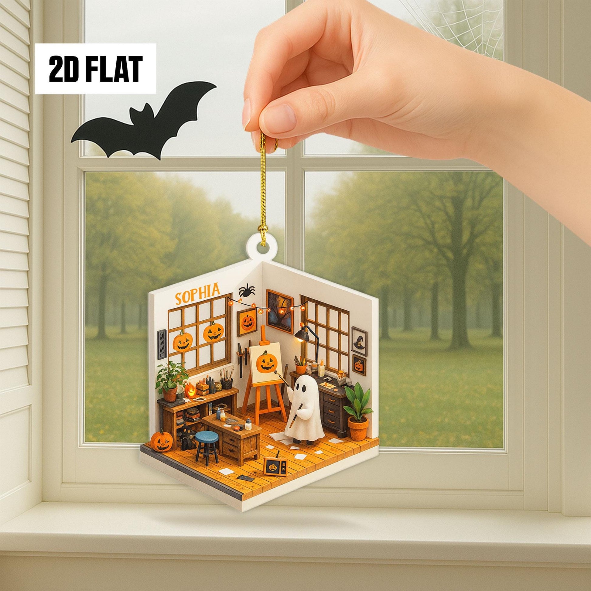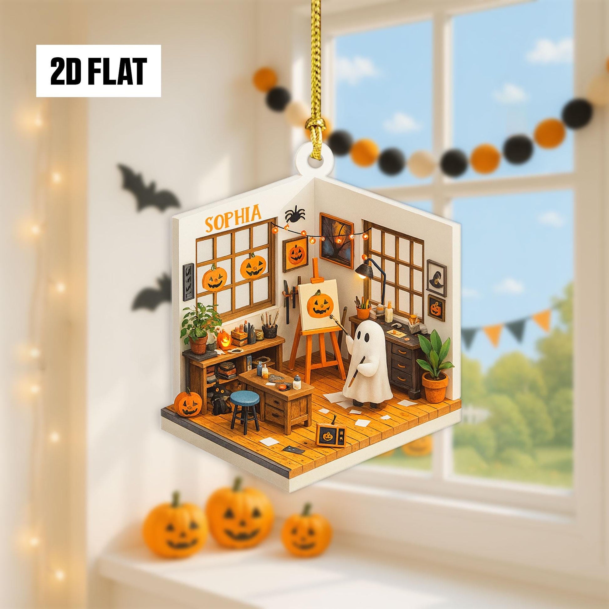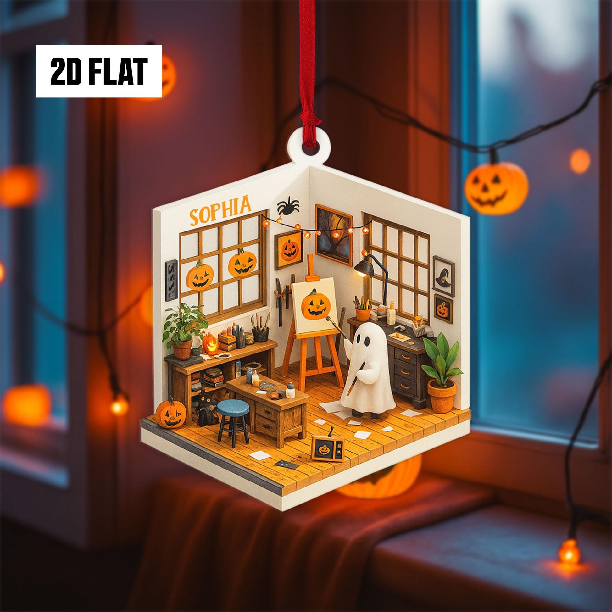 Personalized Dreamy Art Studio 2D Flat Ornament, Custom Name Ornament, Art Lover Gift, Halloween Window Hangings, Art Teacher Gift