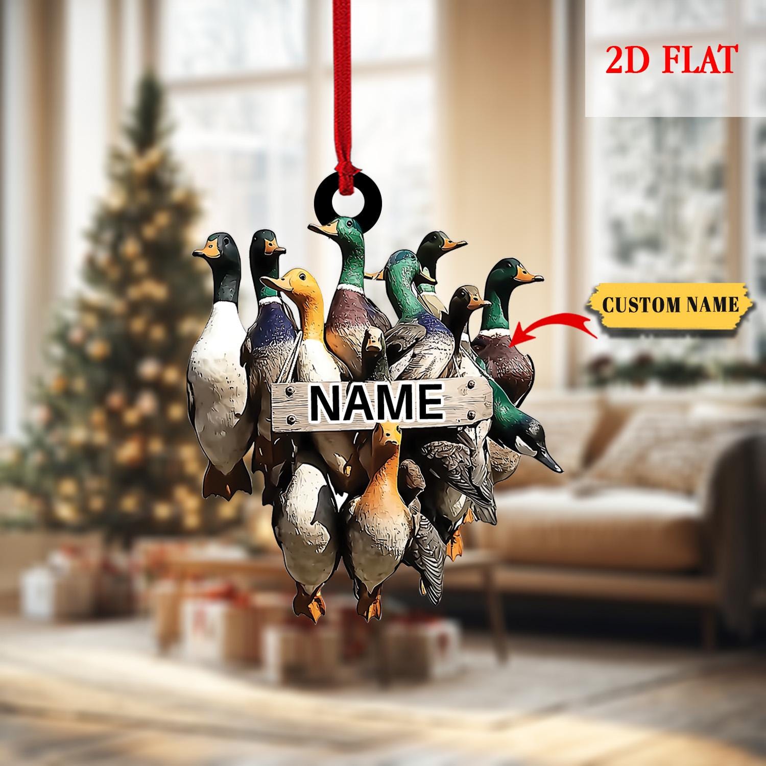 Personalized Duck Hunting 2D Flat Acrylic Christmas Ornament, Hunter Waterfowl Outdoor Ornament, Gift for Hunters, Hunting Christmas Decor
