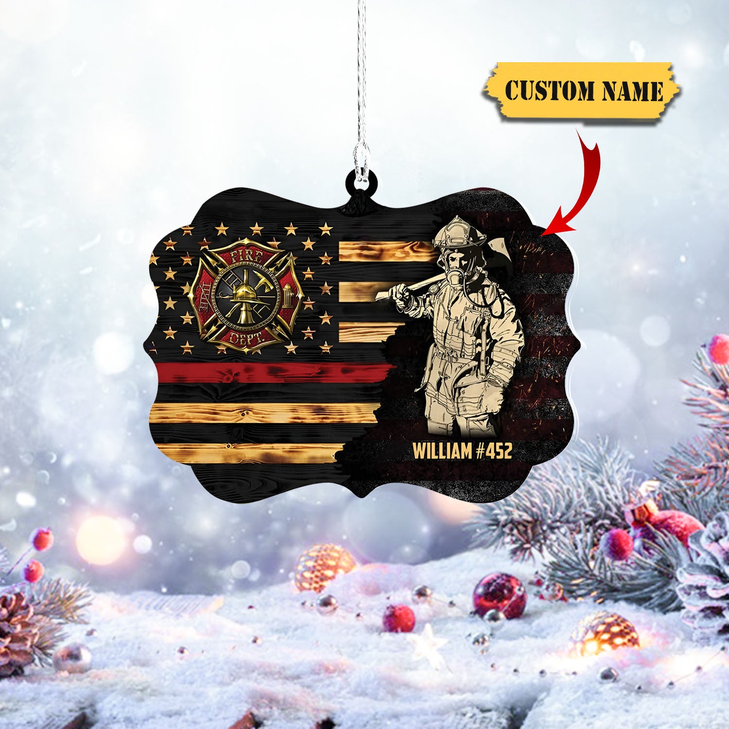 Personalized Firefighter Custom Name Ornament, Firefighter acrylic ornament, Gifts For Fireman On Duty Ornament, Ornament Dad