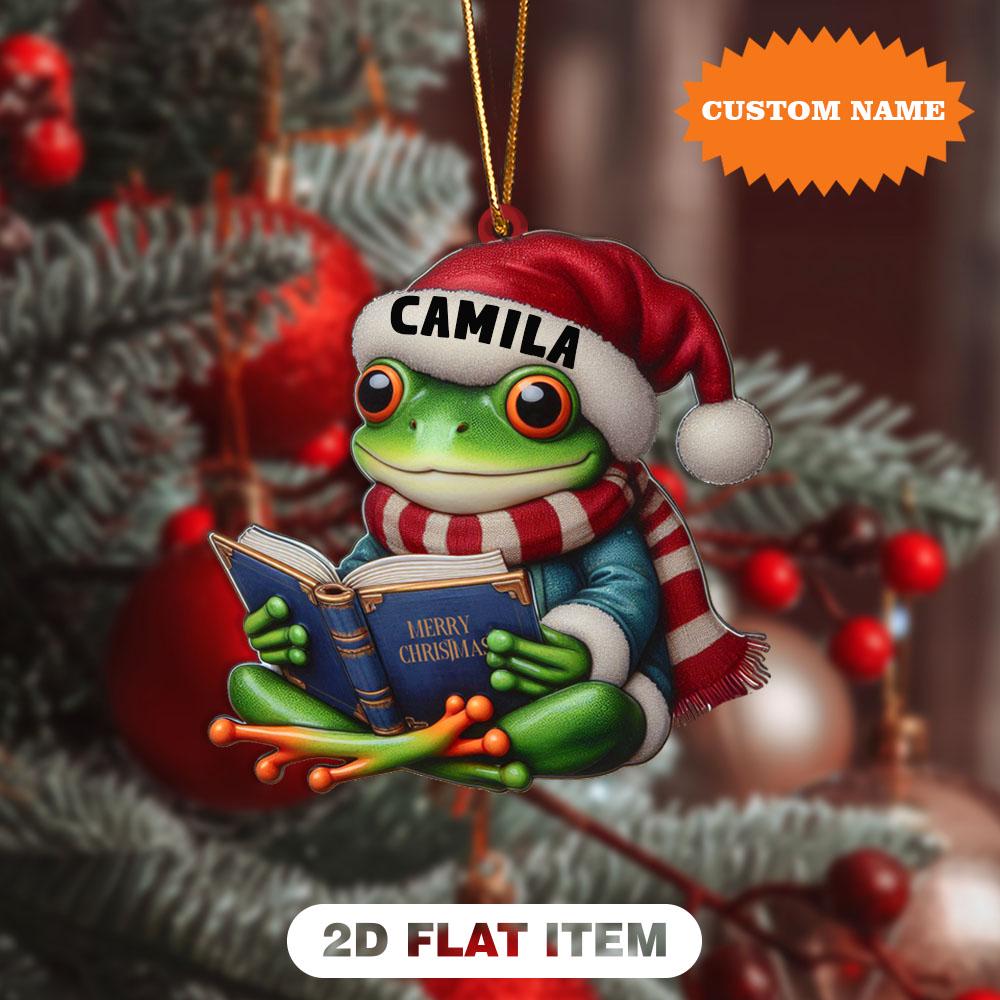 Personalized Frog Reading Book Christmas Ornament, Frog Xmas Ornament, Christmas Tree Decor, Christmas Gift, Gift For Frog Lover