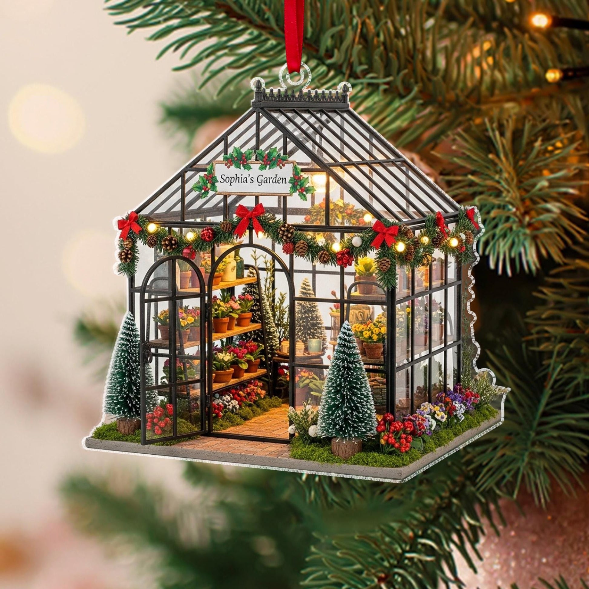 Personalized Garden 2D Flat Acrylic Ornament, Custom Garden House Christmas Ornament, Greenhouse Christmas Tree Decor, Plant Lover Gifts