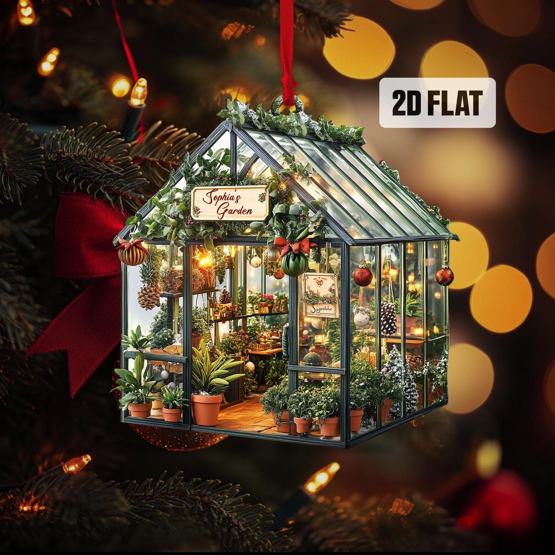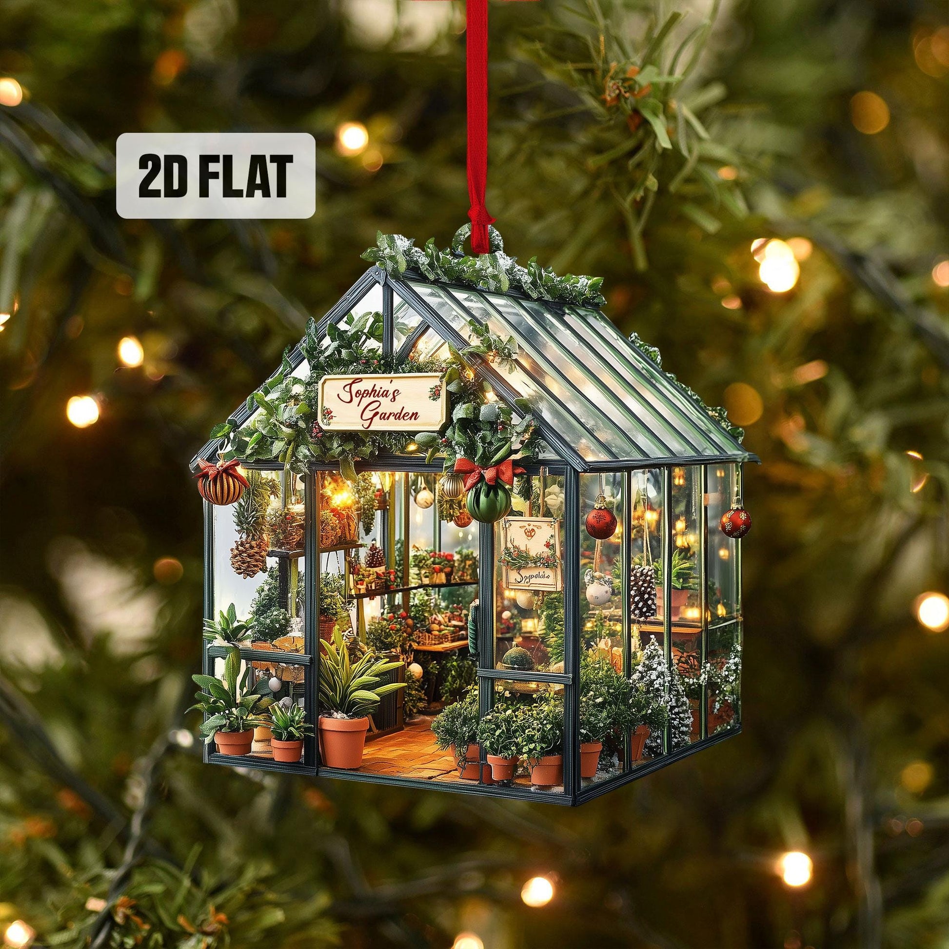 Personalized Garden 2D Flat Ornament, Greenhouse Rearview Mirror Car Accessories, Garden House Christmas Ornament, Plant Lover Gifts
