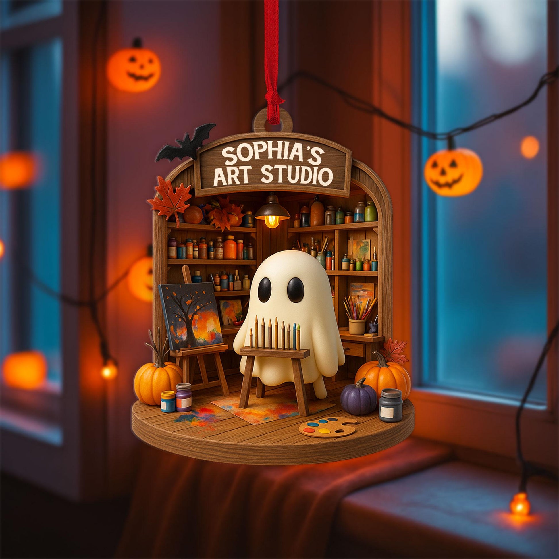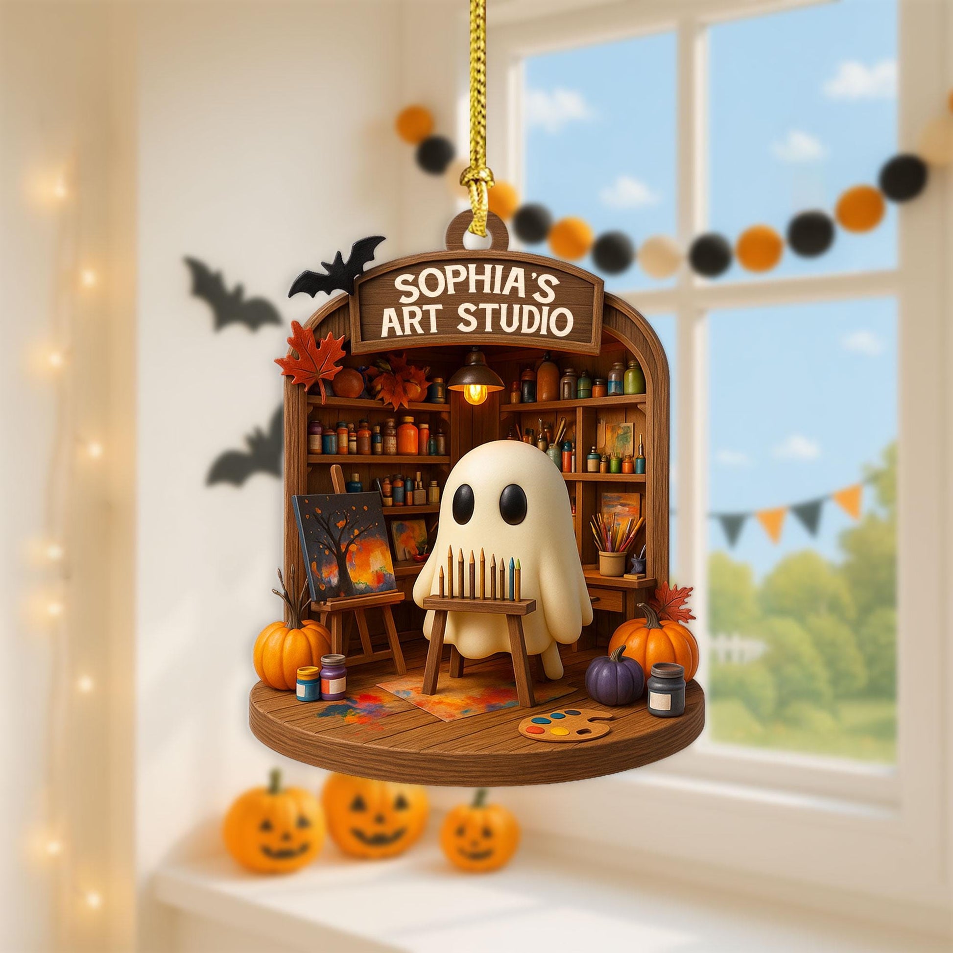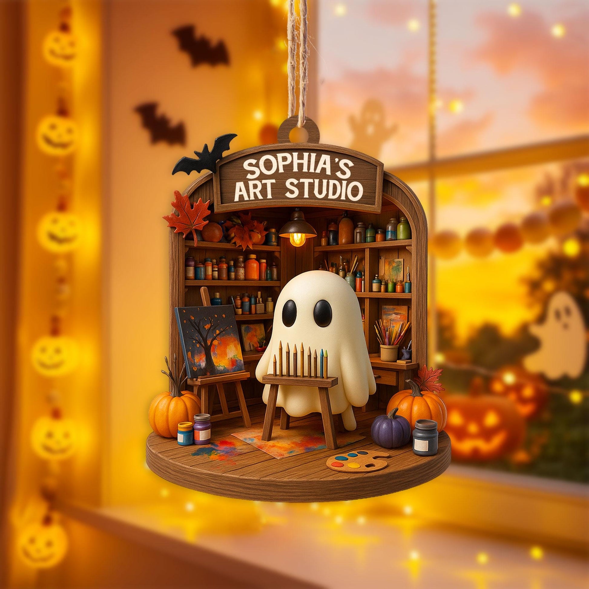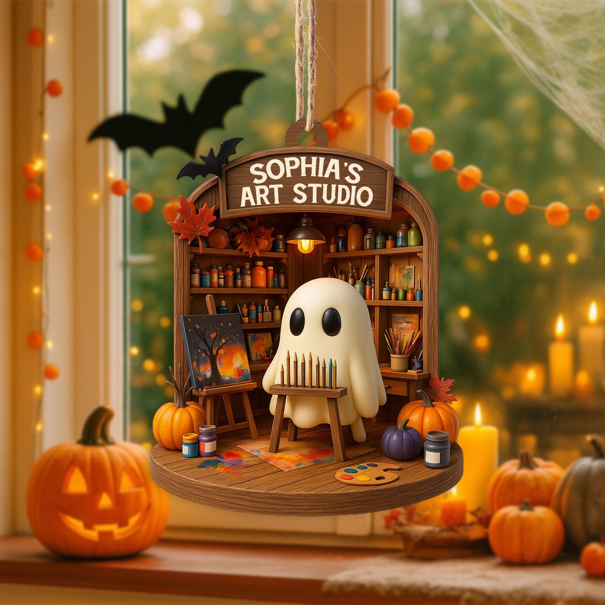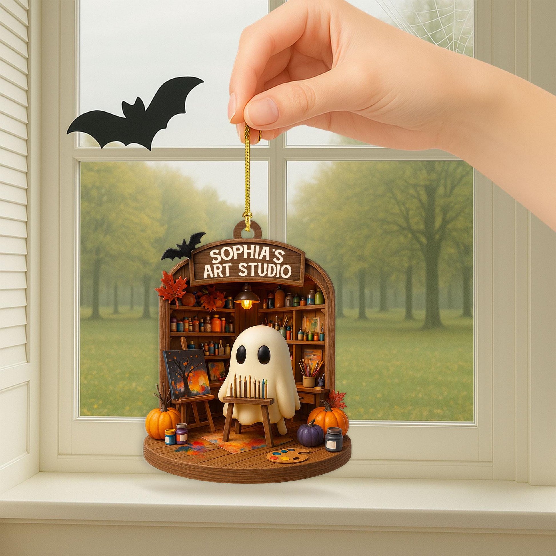 Personalized Ghost Drawing Acrylic Ornament, Art Studio 2D Flat Ornament, Halloween Ghost Window Hangings, Gift for Artists, Art Lover