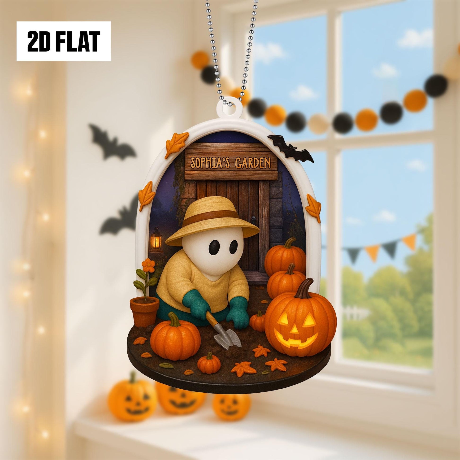 Personalized Ghost in Garden 2D FLAT Acrylic Ornament, Plant Lovers Halloween Gift, Halloween Ornament for Plantaholic, Greenhouse Ornament