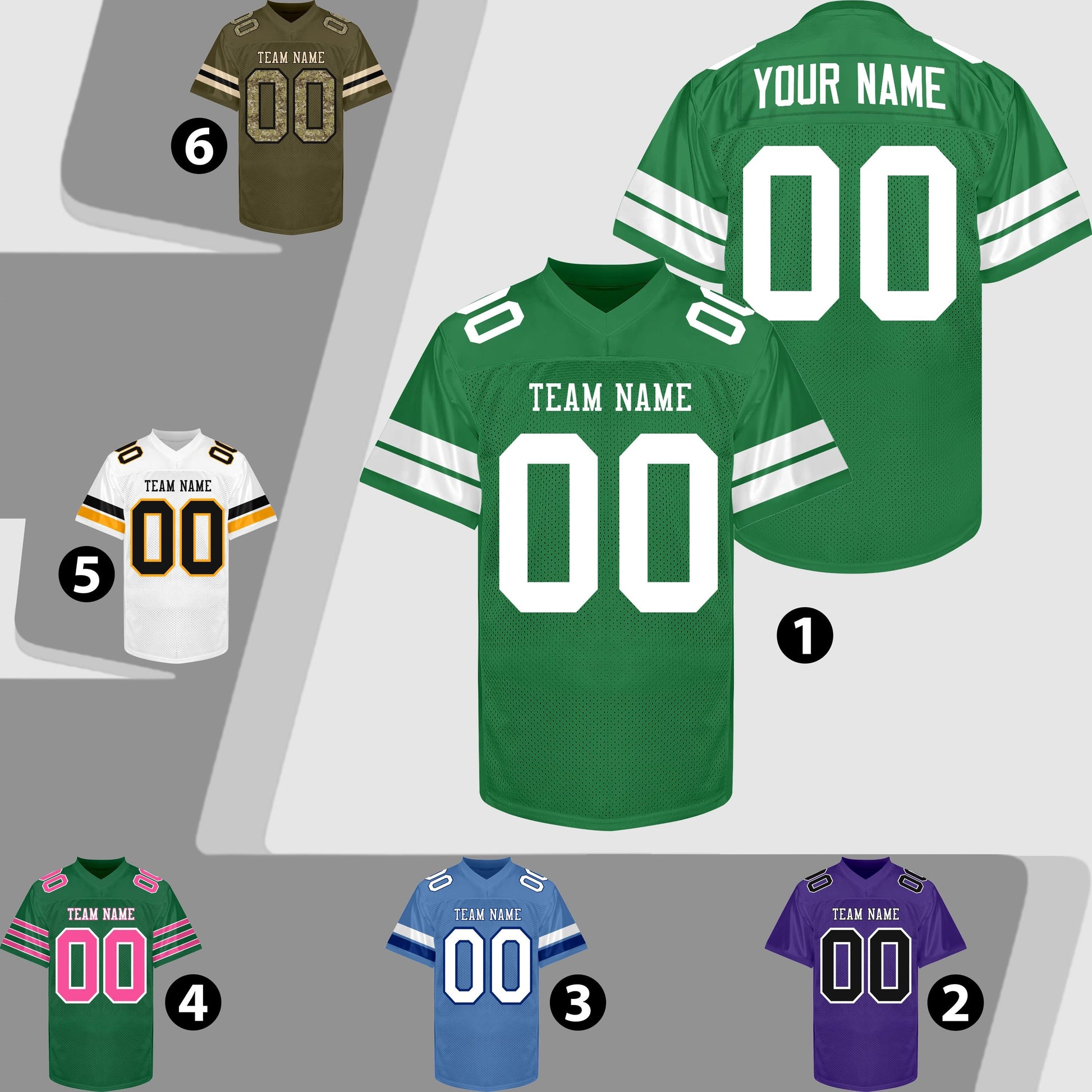 Personalized Green Football Jersey Printed Name Number Logo Custom Green White Football Shirt Men Women Youth Kid Practice Football Uniforms