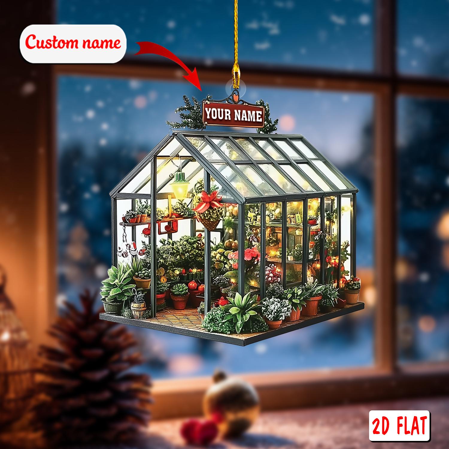 Personalized Greenhouse Ornament 2D Flat, Custom Plant Lover Ornament, Gardener Christmas Decor, Holiday Gift for Greenhouse Owners 2025